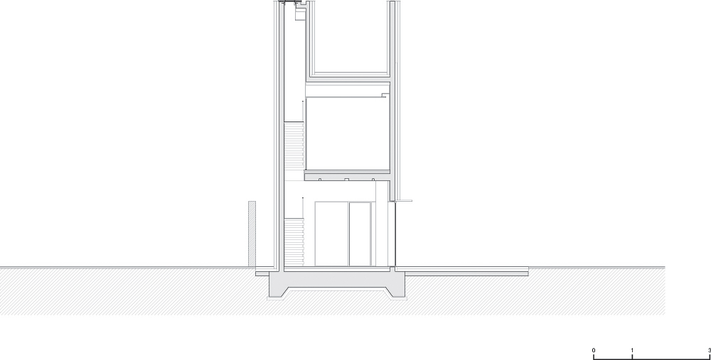 The rear elevation was constructed in a very solid way to densely compose the presence of the mass.