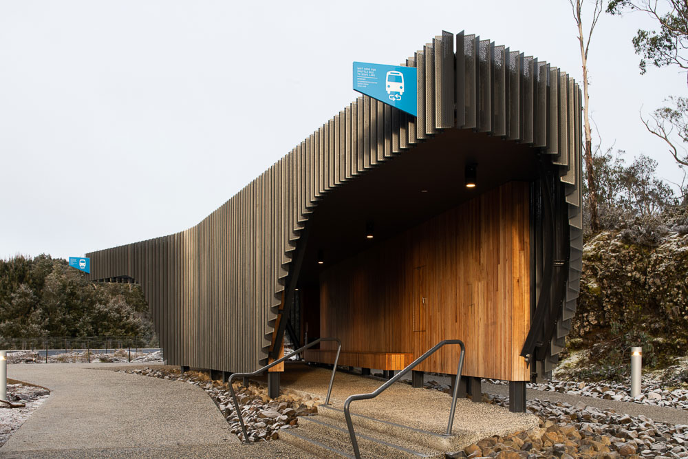 The Visitor Centre offers a warm alpine welcome to reflect both the sense of rugged-up anticipation on arrival and the distinctive Cradle Mountain geology. The sculptural, wilderness-inspired development includes an orientation building, commercial services base, shuttle bus shelter and coach transit centre. At every turn, we aimed to honour the significance and sensitivity of this worldrenowned national park.
