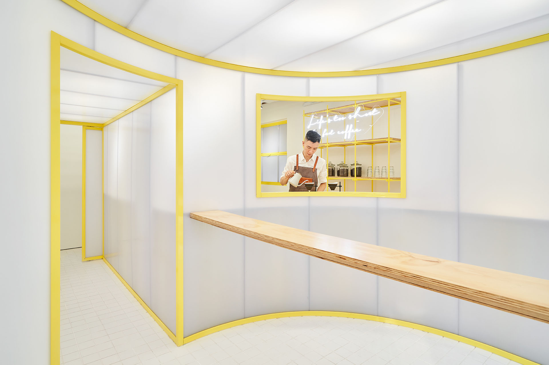 커피 산업은 국내외적으로 전례 없는 호황을 누리고 있다. 이 유행하는 문화는 서빙, 그래픽에서 공간 디자인에 이르기까지 잘 알려진 이야기와 매혹적인 프레젠테이션으로 뒷받침된다. 단순히 좋은 커피 한 잔만으로는 소매업체가 경쟁 환경에서 이윤을 얻기에 충분하지 않다. 고객은 매장을 탐색하면서 항상 신선하고 다양한 경험을 원한다. 건축주인 Fifteen Steps Workshop의 수석 바리스타는 자신의 브랜드를 더욱 돋보이게 하기 위해 가게를 새로운 방식으로 개조해 달라고 요청했다.