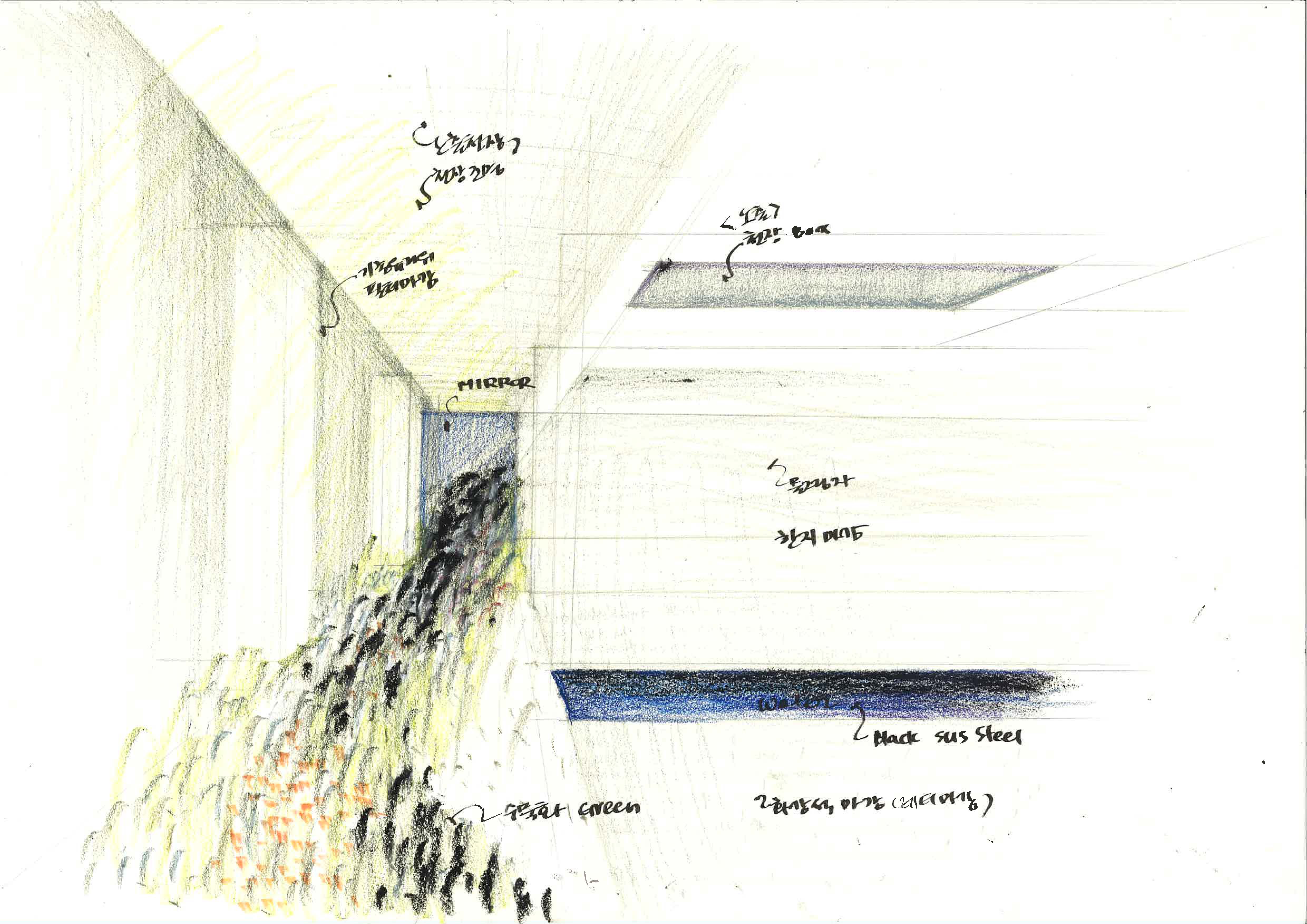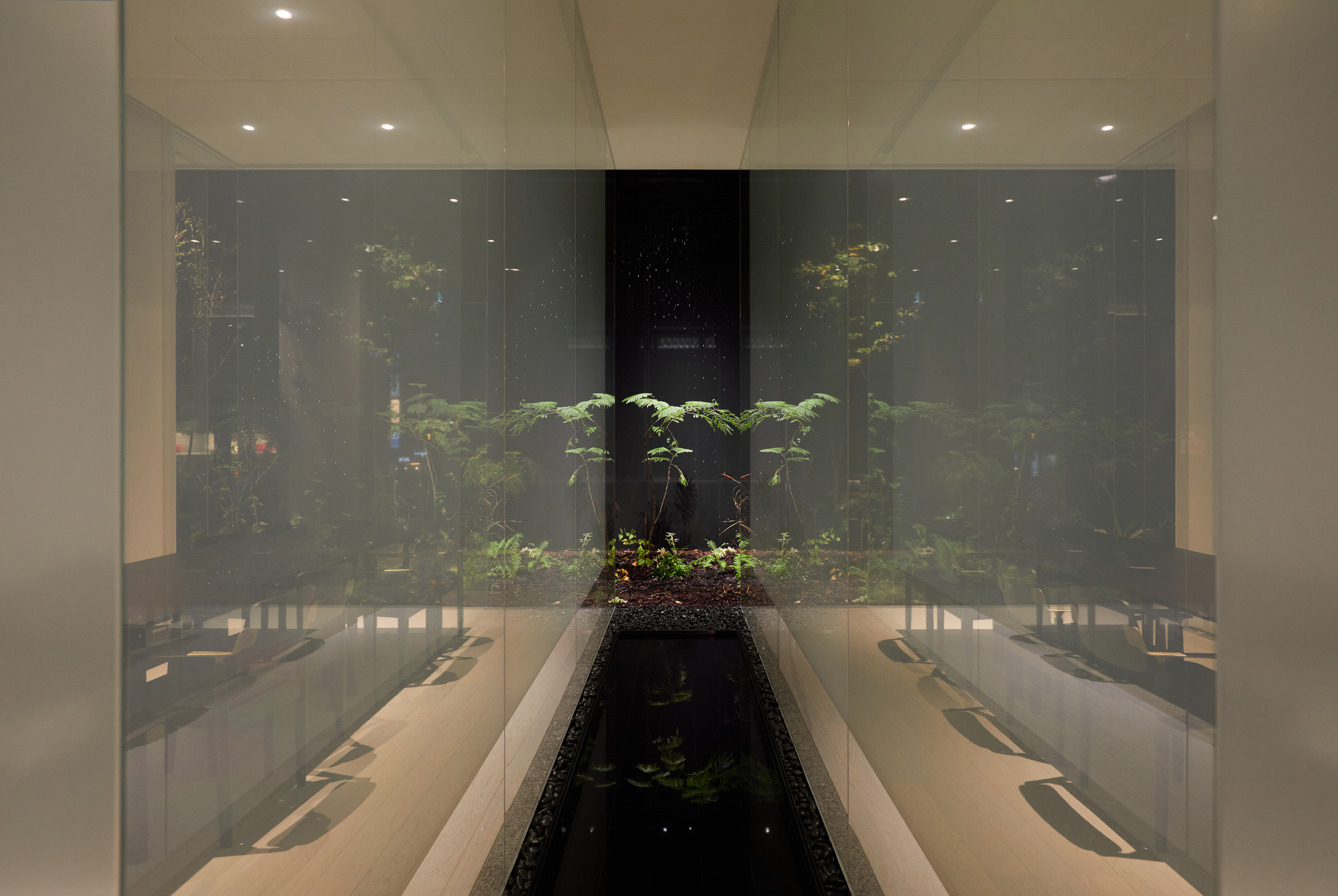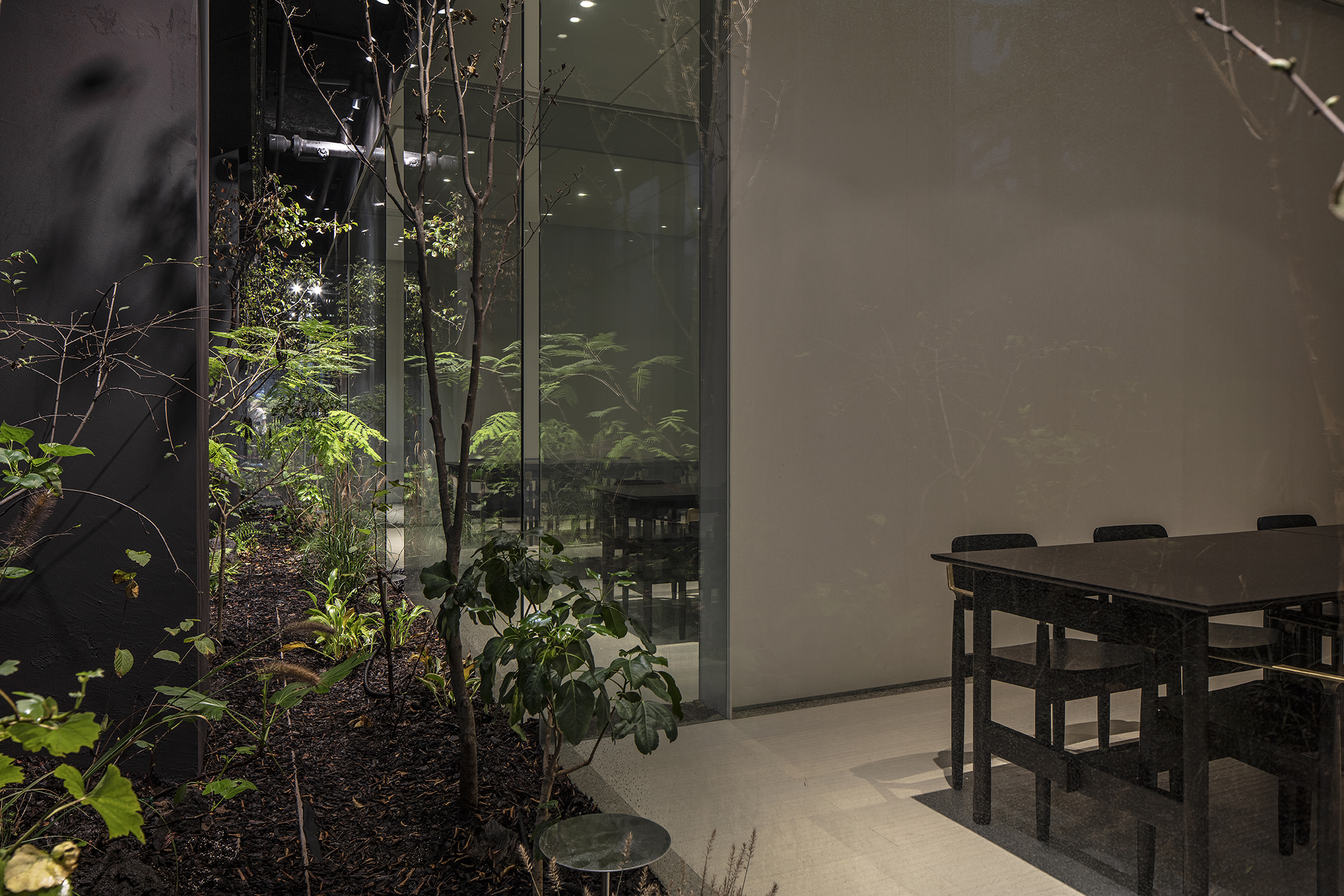 All dining rooms welcome customers with warm and comfortable atmosphere. They adopted more stable proportion compared to other spaces of the restaurant. In the dining room, customers encounter chef’s dishes and thus experience the tradition with different senses. The landscape and indoor water space surround the dining rooms and fully maximize this experience. The landscape consists of native Korean wild plants to add to the concept of “record,” and the water space having its own water circulator system helps create mood for dining in the forest on rainy day.