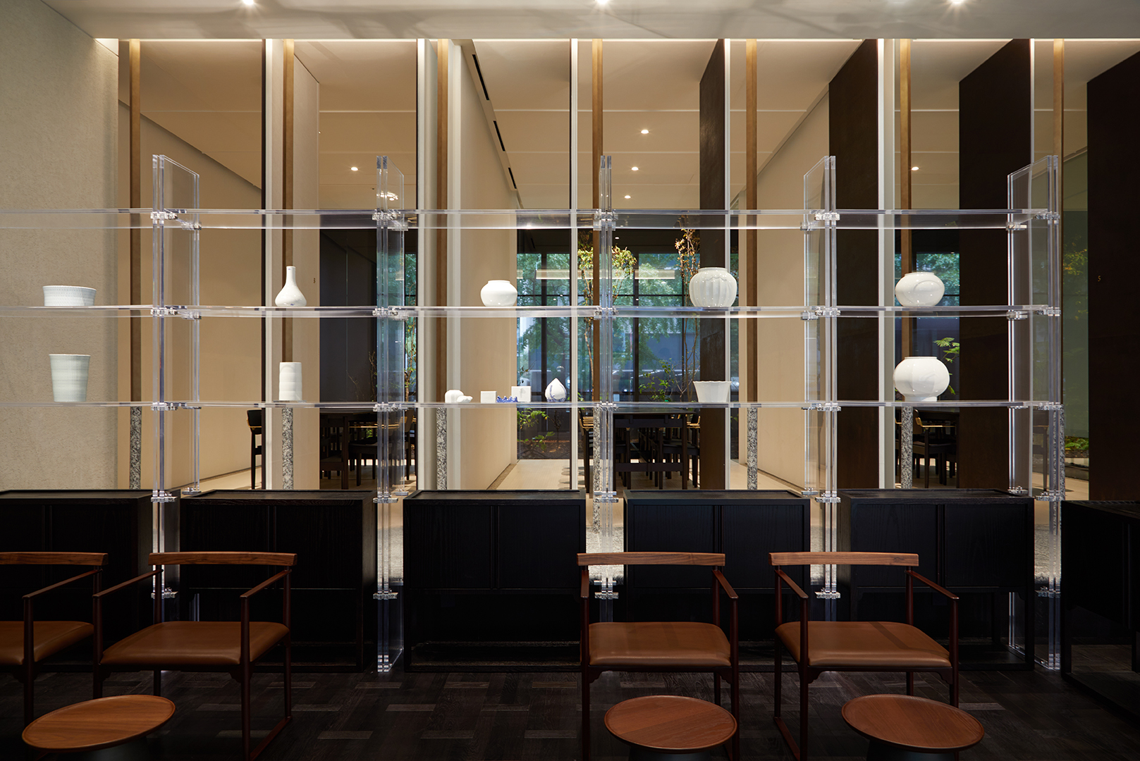GYUBAN is consisted of lounge as transfer space, hallway to connect the lounge and rooms, and 5 separate dining rooms. We thought of each space as past, present, and future; and we layered these spaces for customers to experience the flow of time.