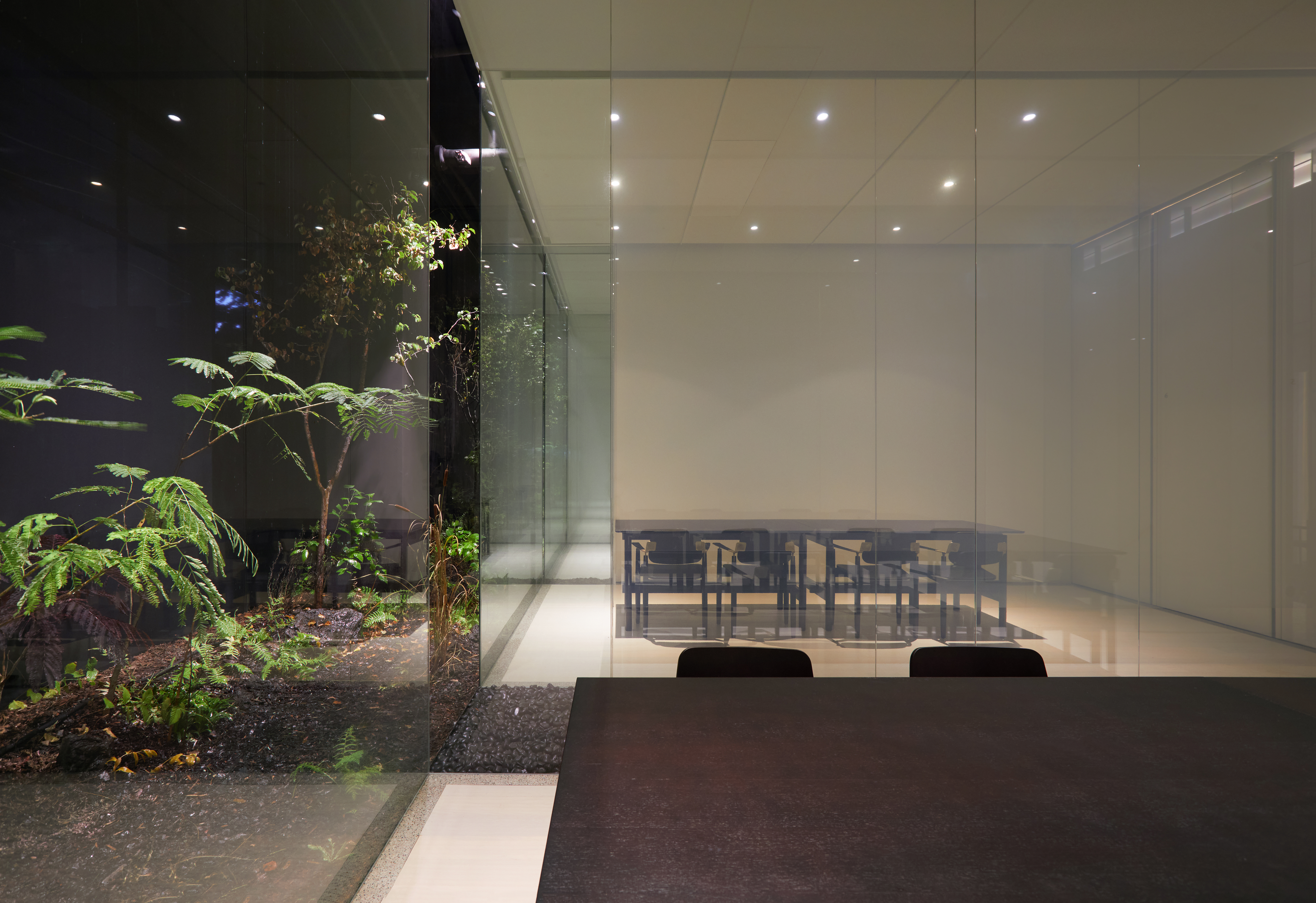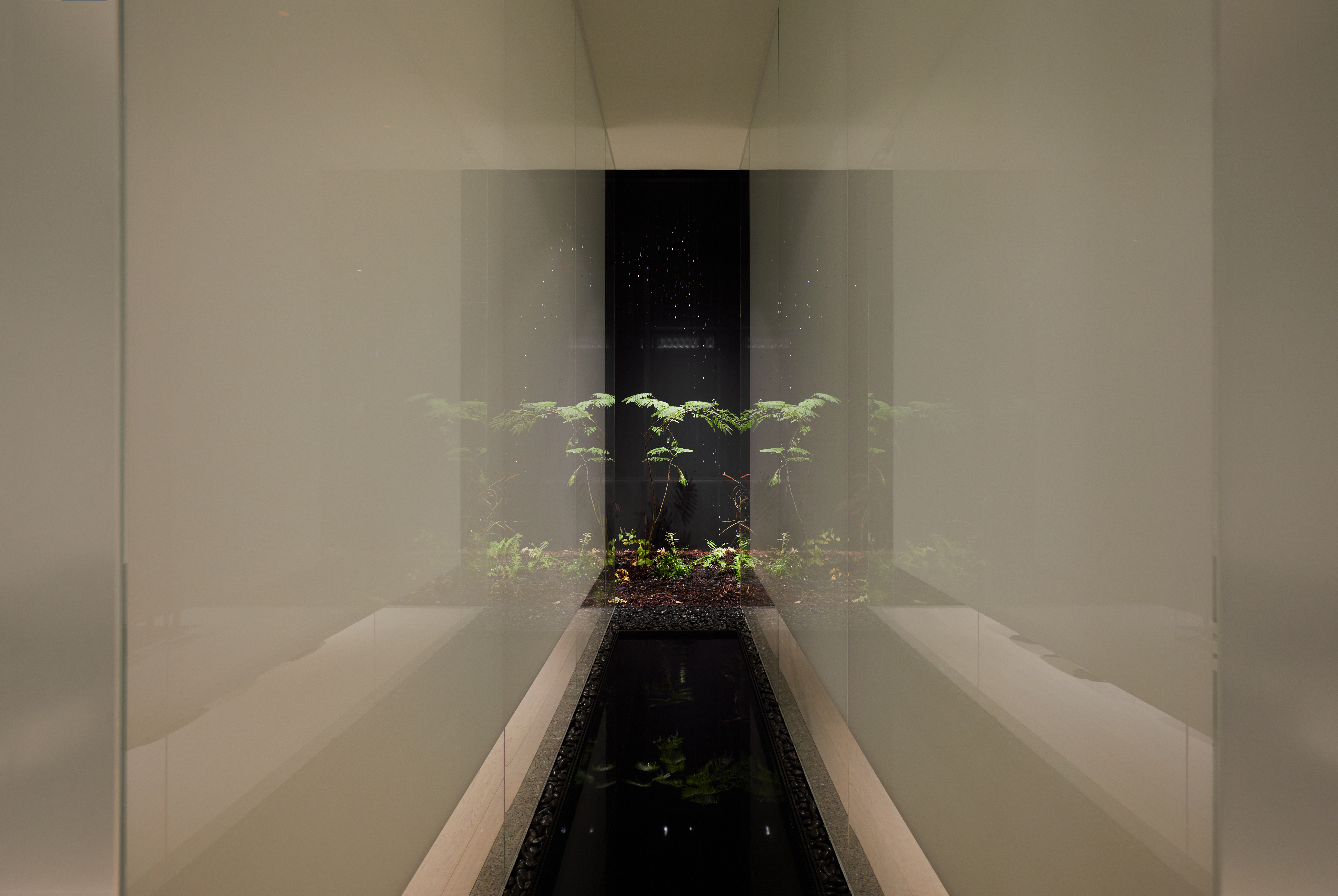 5개의 룸은 가장 오래 머무르는 공간으로 지나온 공간들의 남성적인 이미지와 다르게 따뜻하고 안정적인 비례감을 통해 식사에 집중할 수 있도록 조성했다. 룸은 앞선 공간들에서 느낀 경험들이 모두 집약된 공감각의 공간으로 이는 테이블 위에서 펼쳐지는 셰프의 요리와 닮아있다. 룸을 둘러싸는 조경과 수공간은 이러한 공감각적 경험을 더욱 극대화하는 매개체들로 룸 너머의 조경은 사라져 가는 우리나라의 자생식물로만 구성하여 기록의 의미를 더했다. 그 사이에 관입된 수공간은 워터 서큘레이터 시스템을 구축하여 마치 비가 내리는 어느 자연의 한가운데에서 식사를 하는 경험을 제공한다.