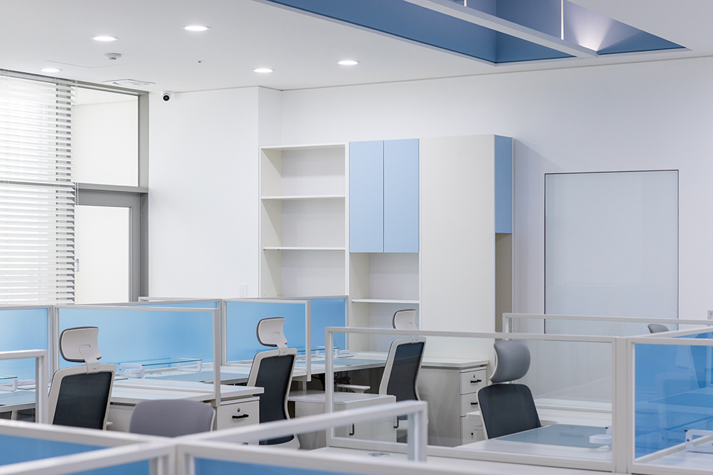 인천광역시 서구 청라에 위치한 푸른 오피스 프로젝트는 사용자에게 최적의 시스템을 갖춘 동선계획이라는 고민에서 시작됐다. 푸른 오피스는 작지 않은 공간이지만, 그 만큼 많은 직원들이 모여서 일하는 곳으로, 커다란 시너지가 발생되며, 그러기 위해서는 최대의 효율성을 확보하기 위한 레이아웃이 필요했다. 각자 일하는 곳에서의 집중성을 확보하고, 모이는 장소에서의 편의성과 기능성을 만들어내기 위해 고민한 프로젝트다. STUDIO IMA가 디자인 하는 사무실이 성장과 회복의 공간이 될 수 있게 회사의 특징과 업무 성격과 직원들의 생활 패턴 등에 대해 사용자와 끊임없이 의견을 나누어 회사라는 특수한 공간이 그 곳에 모인 사람들에게 소속감을 심어주고, 업무의 소통까지도 즐거운 곳 이라고 여겨질 수 있는 공간을 디자인했다.