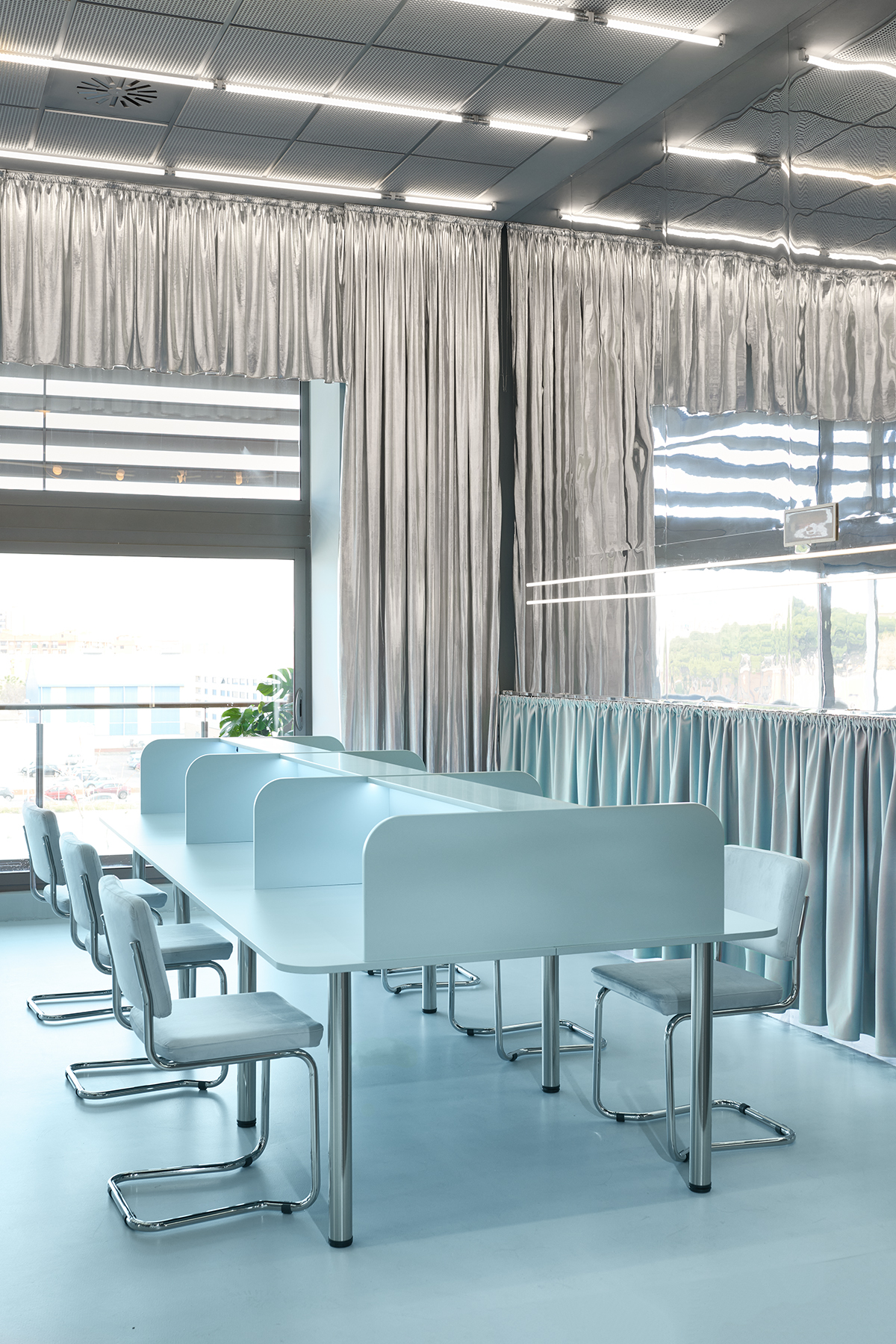 The design starts with the aim to create an environment that in-spires persons that want to break with regular ideas and the tradi-tional life. Thus, we can see in the main room how the picture frames and curtains are inverted to question the conventional and make the co-workers reflect about how we see ‘normal’ in our lives.