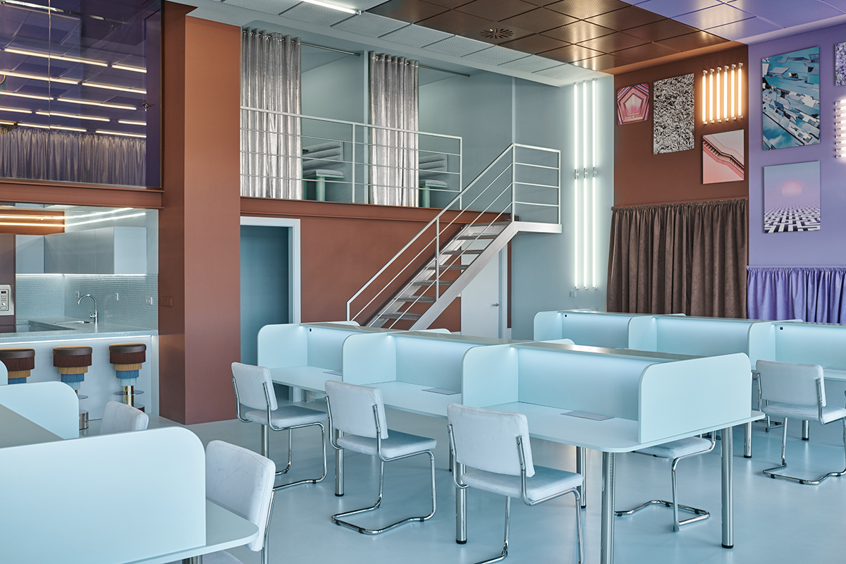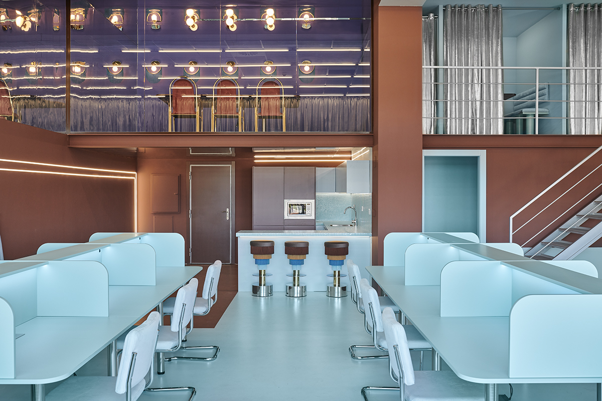 On the other hand you can recognize a clear wink to the past with an interior that brings the 70’s with a retrofuturistic look to the present like if the visitor would enter a time machine to be transported to the future in a space that seeks to transmit a vi-brant, joyful and unconventional energy.