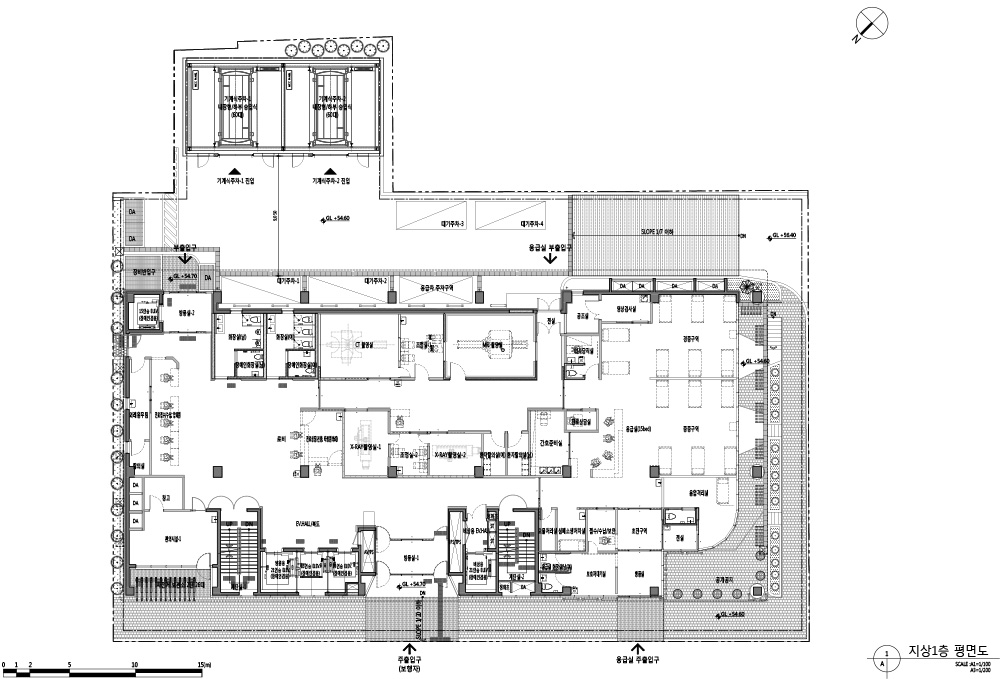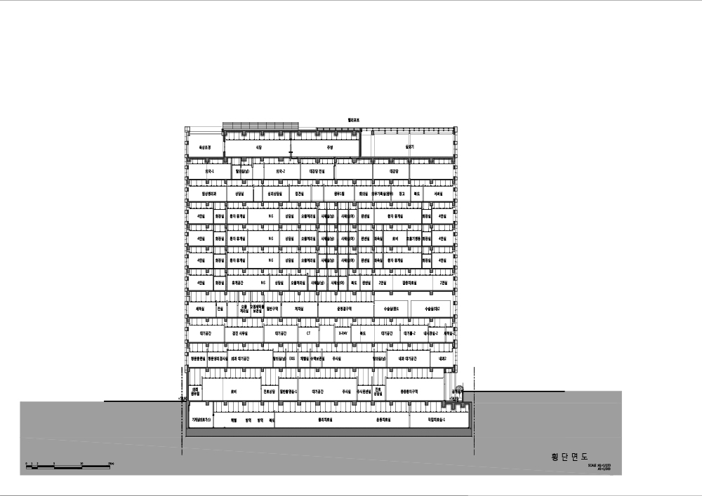 A hospital located under Apsan Mountain in Songhyeon-dong, Dalseo-gu. It faces Songhyeon station as well as a residential area and commercial facilities in its surrounding. The roadside site environment and the surrounding arcades are harmonious, and the pedestrian passages within the site have been expanded to provide an open space to local residents, and the new community space (public open space) creates natural encounters for local residents. On the first floor, there is a lobby that can be accessed from the front and back sides of the building as well as an emergency room that can be accessed quickly. The second floor holds the specialist outpatient clinics inlcuding the surgery, medicine, orthopedic and plastic surgery departments, and the third floor contains health examination facilities. On the fourth floor, there is the central supply room, ERCP room, and operating room, and the fifth to eight rooms hold the hospital rooms. The clinical pathology department, in-hospital pharmacy, and hospital administration/general affairs divisions are on the ninth floor, the hospital staff rooms and auditorium are on the tenth floor, and a restaurant is on the eleventh floor.