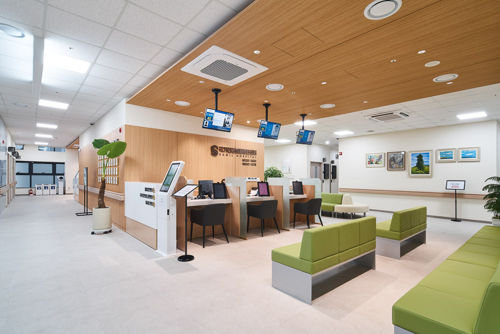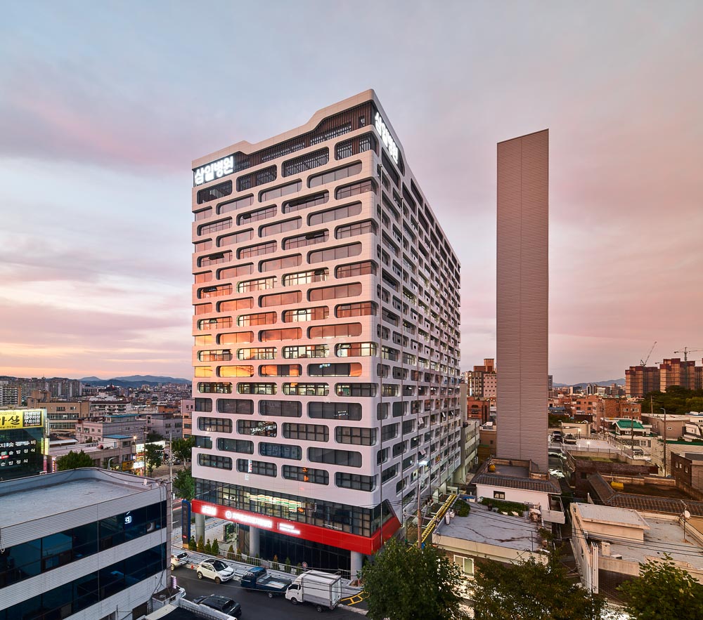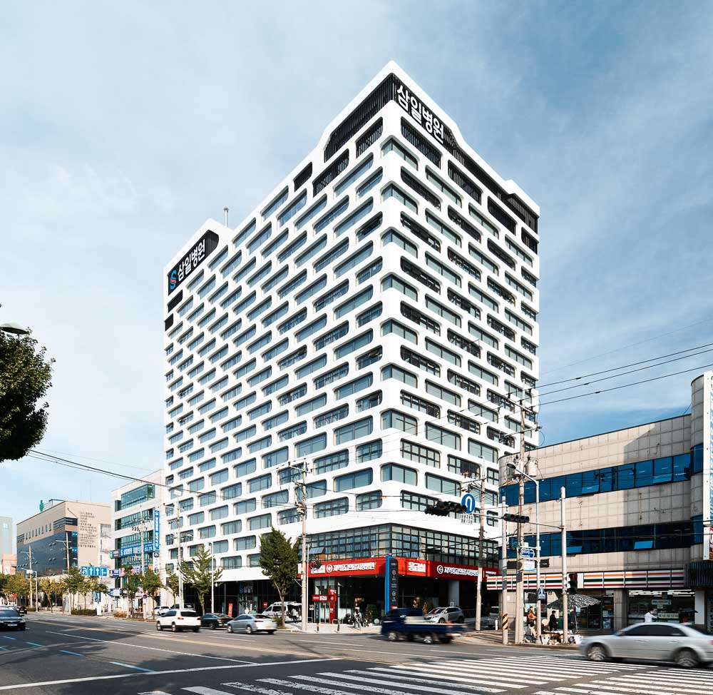 Samil Hospital is a general hospital with a healing environment that can provide psychological stability beyond simple treatment. To differentiate it for common general hospitals in the city center, a healing environment that considered its users was formed, rather than an ordinary hospital, by maximizing the benefits of the natural environment and the scale, which was expanded than that of existing hospital programs. Considering the symbolism as a regional emergency medical institution representing not only Dalseo-gu but also Daegu, Spanish aluminum composite panels were used as a main material that can provide a warm image, allowing it to become a place with a relaxing atmosphere.