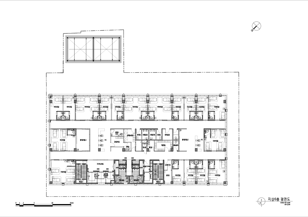 주요 코어는 북측에 있으며, 병실과 주요 실들은 남향으로 배치되어 자연채광이 최대한 확보되어 있다. 또한, 환자들이 공용으로 이용하는 시설인 샤워실, 탈의실, 휴게실과 유사한 시설을 가운데 배치하여 환자들이 이동하는 동선을 최소화한다. 중앙 양측 두 곳에 배치된 간호사 대기 공간은 전형적인 순환동선 적용하여 병실을 관리하기에 용이하다.