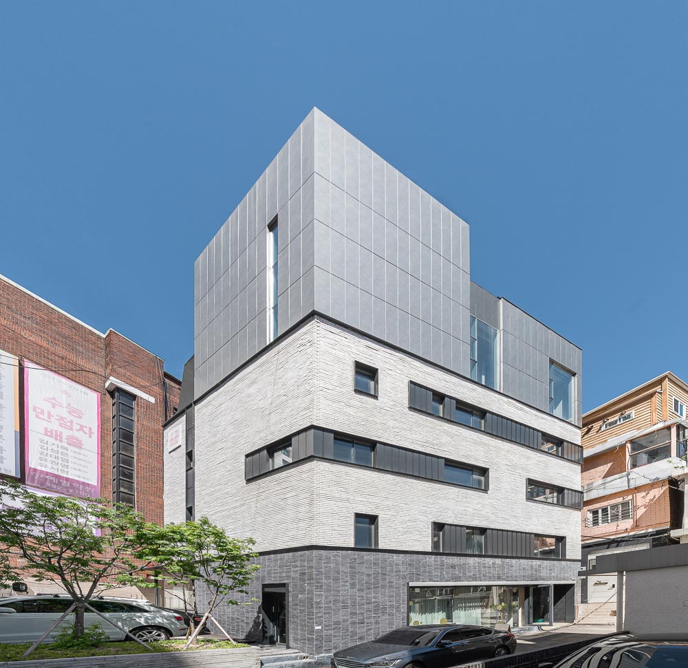 Firstly, each space needed to be reconfigured and rearranged in the process of converting the existing building into the corporate building of a design office. Using the level difference of the front slope, the previous toilette space at the stair landing between the 1st and 2nd floors was converted into the main lobby, and the previous main entrance was planned as the entrance only for the 1st floor and the basement, distinguishing the users of the corporate building from the tenants. In the corporate building, which occupies from the 2nd floor, the abundant resting spaces were arranged in several places by using the large stair landing on each floor, and the spaces fitting the nature of the program of each department and team were composed. In particular, the meeting room with a high floor height was created by vertically extending the existing 4th and 5th floors, and the rooftop office bar connected to the rooftop garden allowed a panoramic view to the landscape of Ahyeong-dong. All these were made to give good impression.