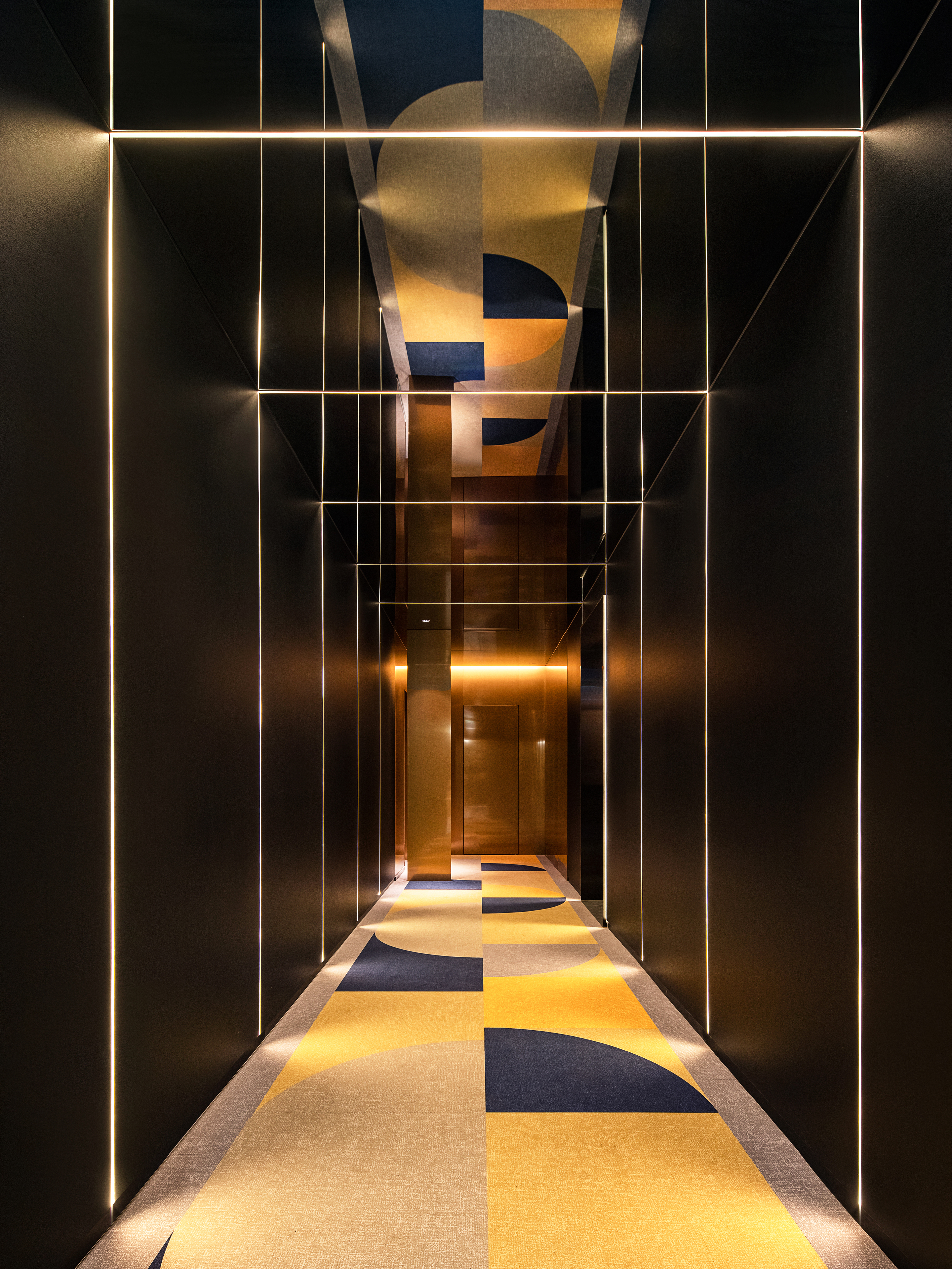 Even though people get off the elevator from the hotel, the gate of this space is designed as an elevator door, giving people a witty confusion as well as providing a new experience with an axis that does not change despite getting on the elevator through the space.