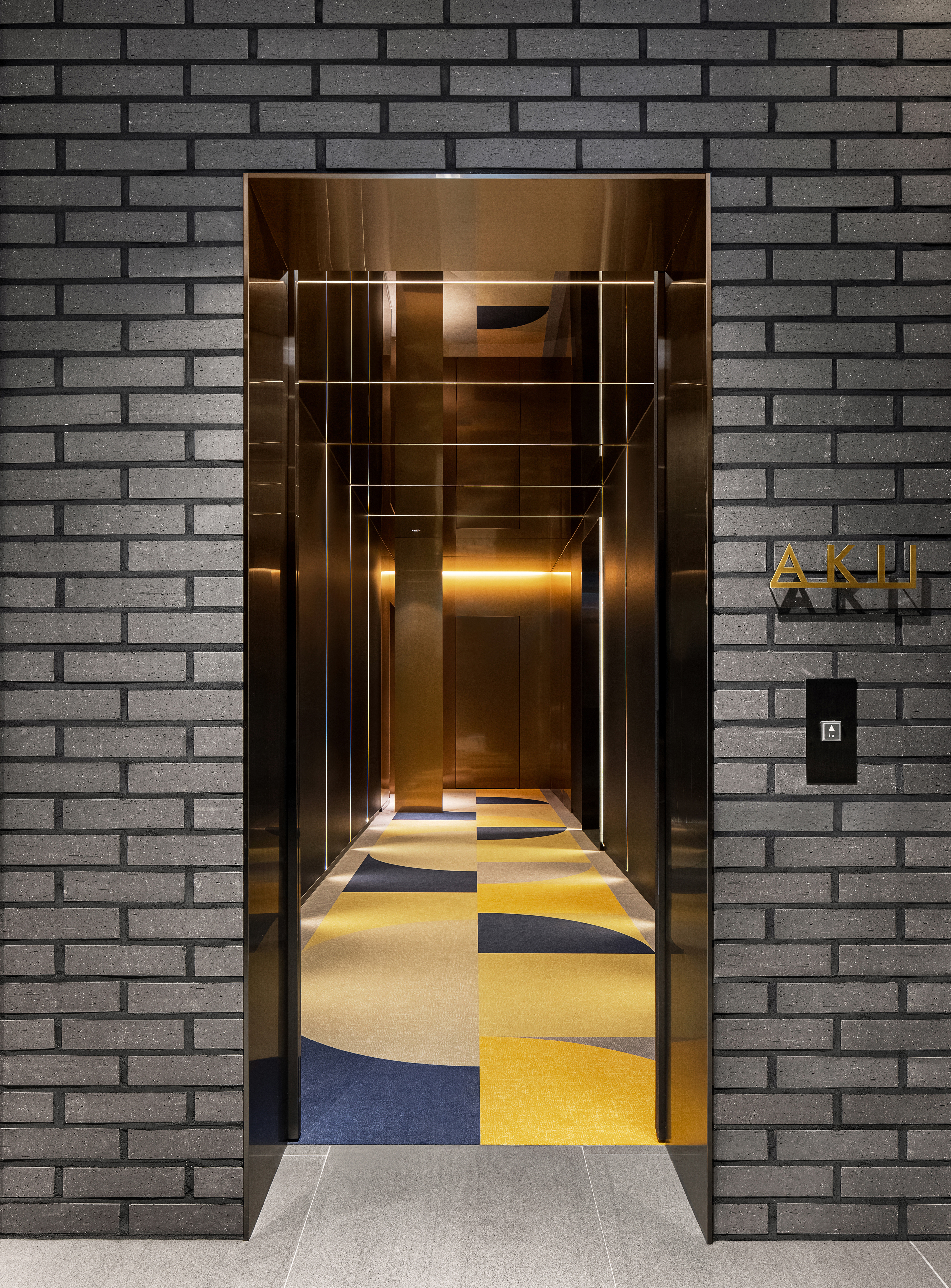 Even though people get off the elevator from the hotel, the gate of this space is designed as an elevator door, giving people a witty confusion as well as providing a new experience with an axis that does not change despite getting on the elevator through the space.