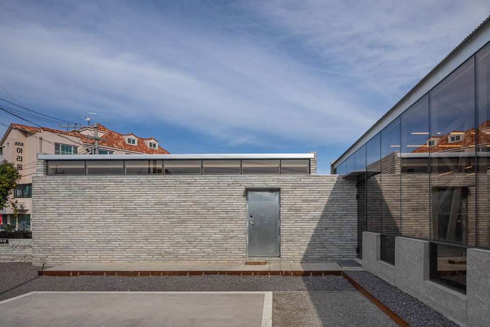 Sohun is a project that planned an office within the existing Jeju tangerine orchard. The orchard is situated in a village between the Ido and Ara districts, which have become new towns due to housing site development, and it is a site that retains the form of an old orchard even in the city center. This project consists of two main spaces, and it was made to be able to draw in the Jeju tangerine orchard as much as possible without compromising the function of the office space, and melt it into the surroundings to form a landscape together. For this end, a bright and pleasant work environment was created by using glass on the north and south sides of the office space and securing as much light as possible. As for the meeting space, glass was used on the east side to have a view of the orchard, and a wall was built to the west side to take care of the light from the west. The areas of the two spaces were separated and each area was directly connected to the exterior. At the same time, it was possible to separate and connect the two spaces through the corridor that was naturally created between the spaces.