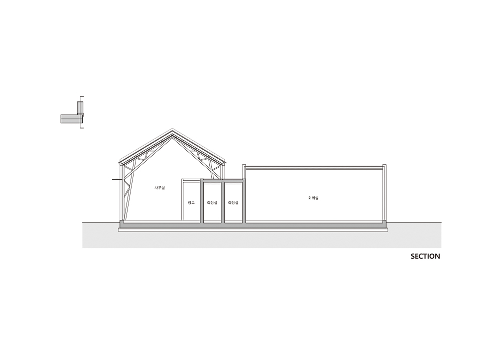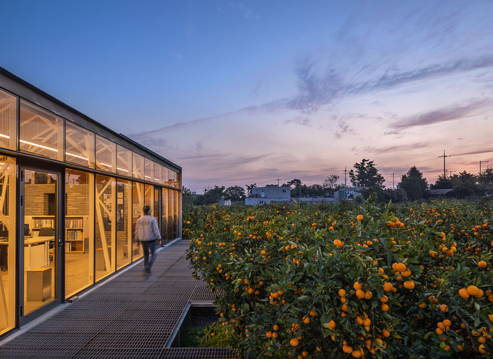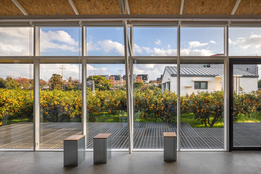 이 프로젝트는 크게 두 개의 공간으로 사무공간의 기능을 해치지 않고 감귤 과수원을 최대한 끌어들여 그 주변에 녹아들며 함께 풍경을 이루게 했다. 이를 위해 사무공간의 남북으로는 유리를 사용하여 채광을 최대한 확보해 밝고 쾌적한 업무환경을 만들고, 회의공간은 동향으로 유리를 내어 과수원 전경을 바라보게 하고 서향으로 벽을 만들어 서향 빛에 대응토록 했다. 두 공간의 영역을 구분하고 각 영역에서 외부와 직접 연결했다. 동시에 공간 사이의 자연스레 생긴 복도를 통해 두 공간의 구분과 함께 연결이 가능하게 했다.