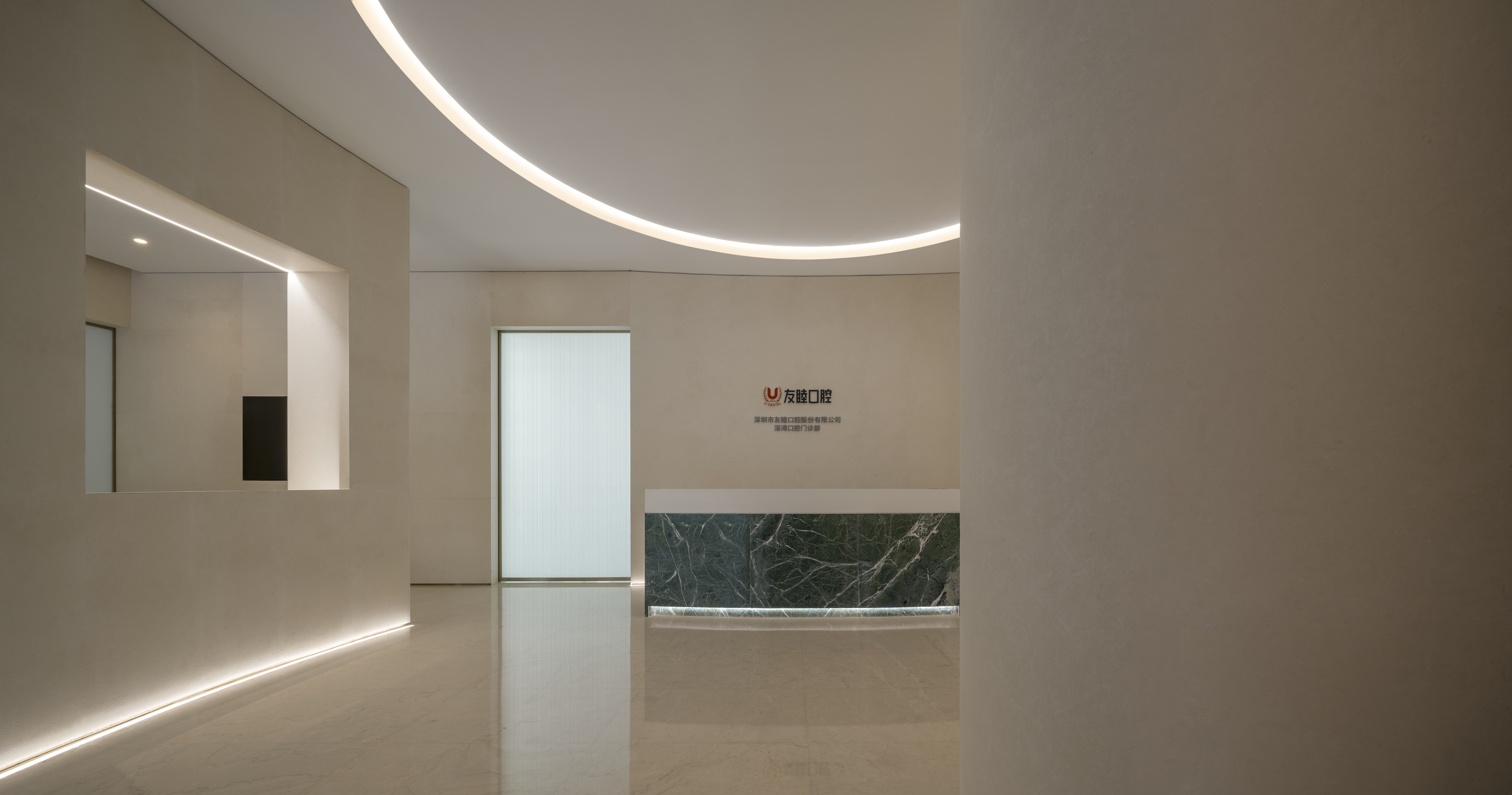U-DENTAL은 선전의 중산층을 대상으로 한 15년의 역사를 가진 체인 치과 병원이다. 이 브랜드는 중국 선전의 복합 사용 커뮤니티인 One Shenzhen Bay에 새로운 전제를 제시하여 현대 예술과 기술의 균형을 이루고 의료소비의 질을 높이고자 하는 수요를 충족시키기를 원했다. DA INTEGRATING LIMITED는 사람들에게 불안과 공포를 안겨주는 기존 클리닉의 고정관념을 깨기 위해 "현대 미술관"이라는 개념을 채택하여 의료 공간과 현대 미술의 통합을 모색했다. 디자인팀은 흰 공간에 자연스럽고 기하학적이며 현대적인 예술적 요소들을 사용하여 독특하지만 평화롭고 편안하며 따뜻한 공간을 만들었다.