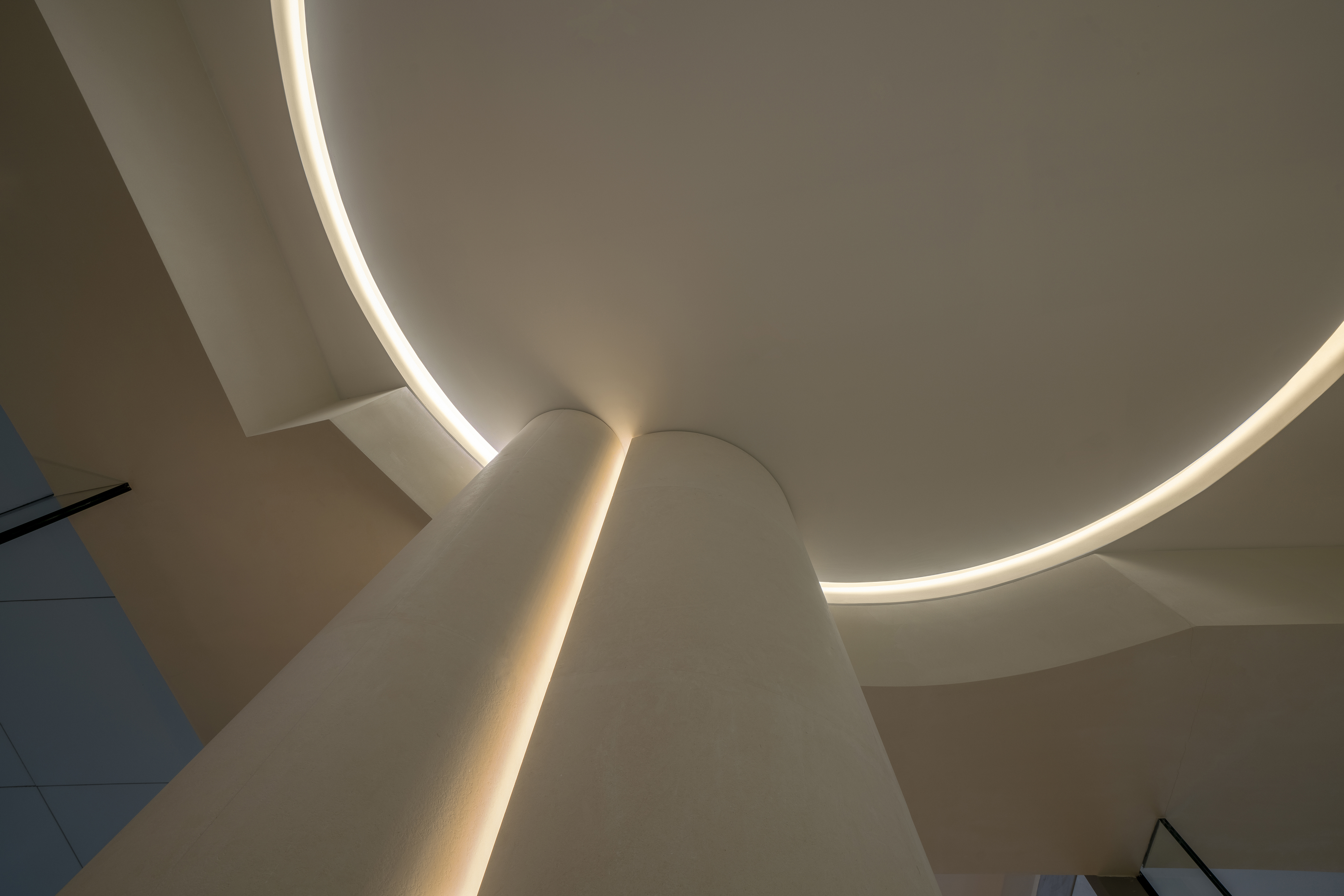 공간에는 예술적이고 인간 친화적인 디자인 뿐만 아니라 은은한 조명 표현들이 녹아있다. 전문 공간과 비전문 공간은 흰색과 따뜻한 조명으로 구분된다. 소재와 질감이 어우러진 조명의 반사는 차별화된 시각적 효과를 낸다. 벽면에 떠 있는 따뜻한 노란색 선형 조명은 기술 감각을 보여주고 순환 경로를 안내하며 독특한 감각적 경험을 제공한다.