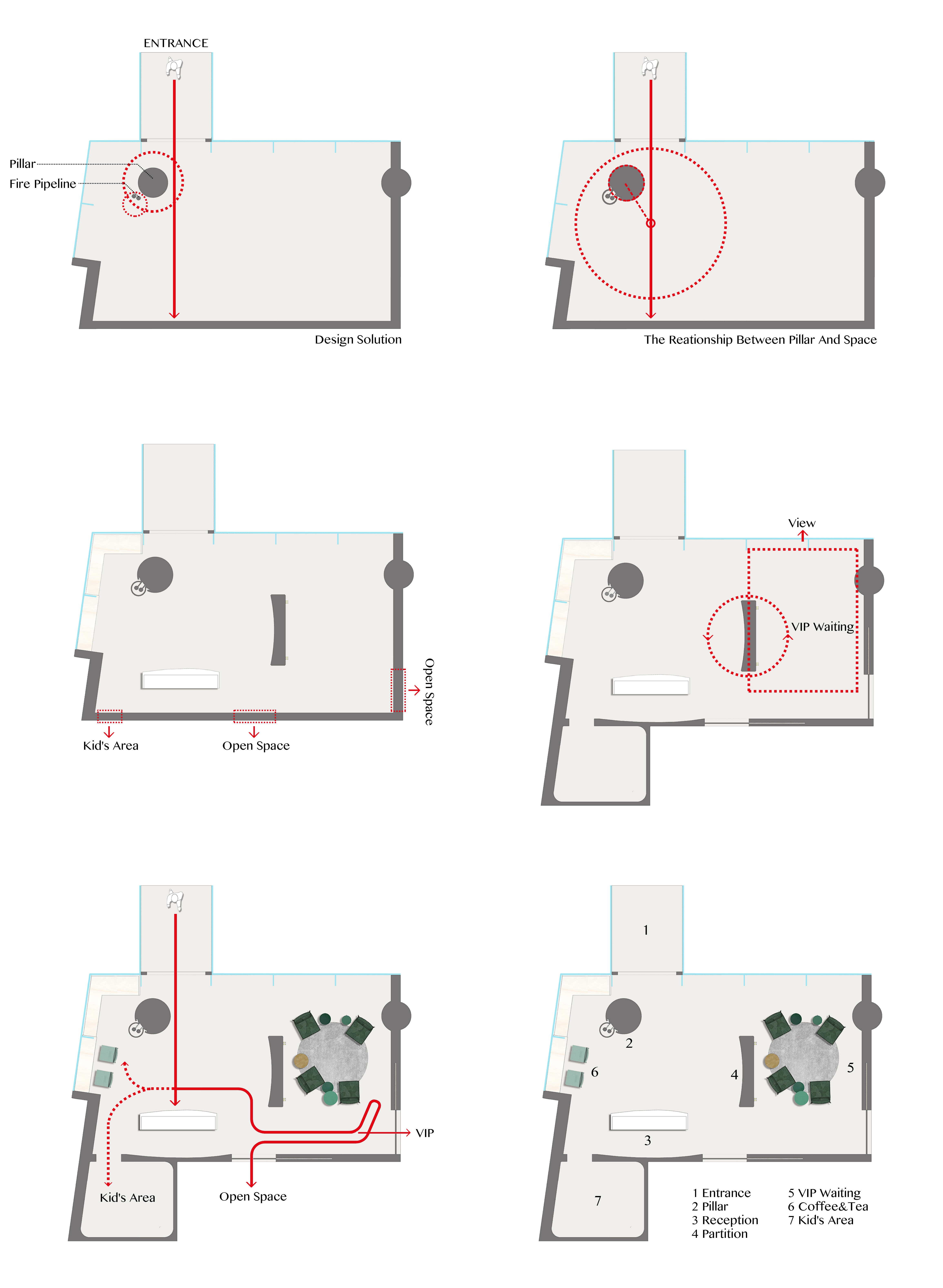 U-DENTAL은 선전의 중산층을 대상으로 한 15년의 역사를 가진 체인 치과 병원이다. 이 브랜드는 중국 선전의 복합 사용 커뮤니티인 One Shenzhen Bay에 새로운 전제를 제시하여 현대 예술과 기술의 균형을 이루고 의료소비의 질을 높이고자 하는 수요를 충족시키기를 원했다. DA INTEGRATING LIMITED는 사람들에게 불안과 공포를 안겨주는 기존 클리닉의 고정관념을 깨기 위해 "현대 미술관"이라는 개념을 채택하여 의료 공간과 현대 미술의 통합을 모색했다. 디자인팀은 흰 공간에 자연스럽고 기하학적이며 현대적인 예술적 요소들을 사용하여 독특하지만 평화롭고 편안하며 따뜻한 공간을 만들었다.