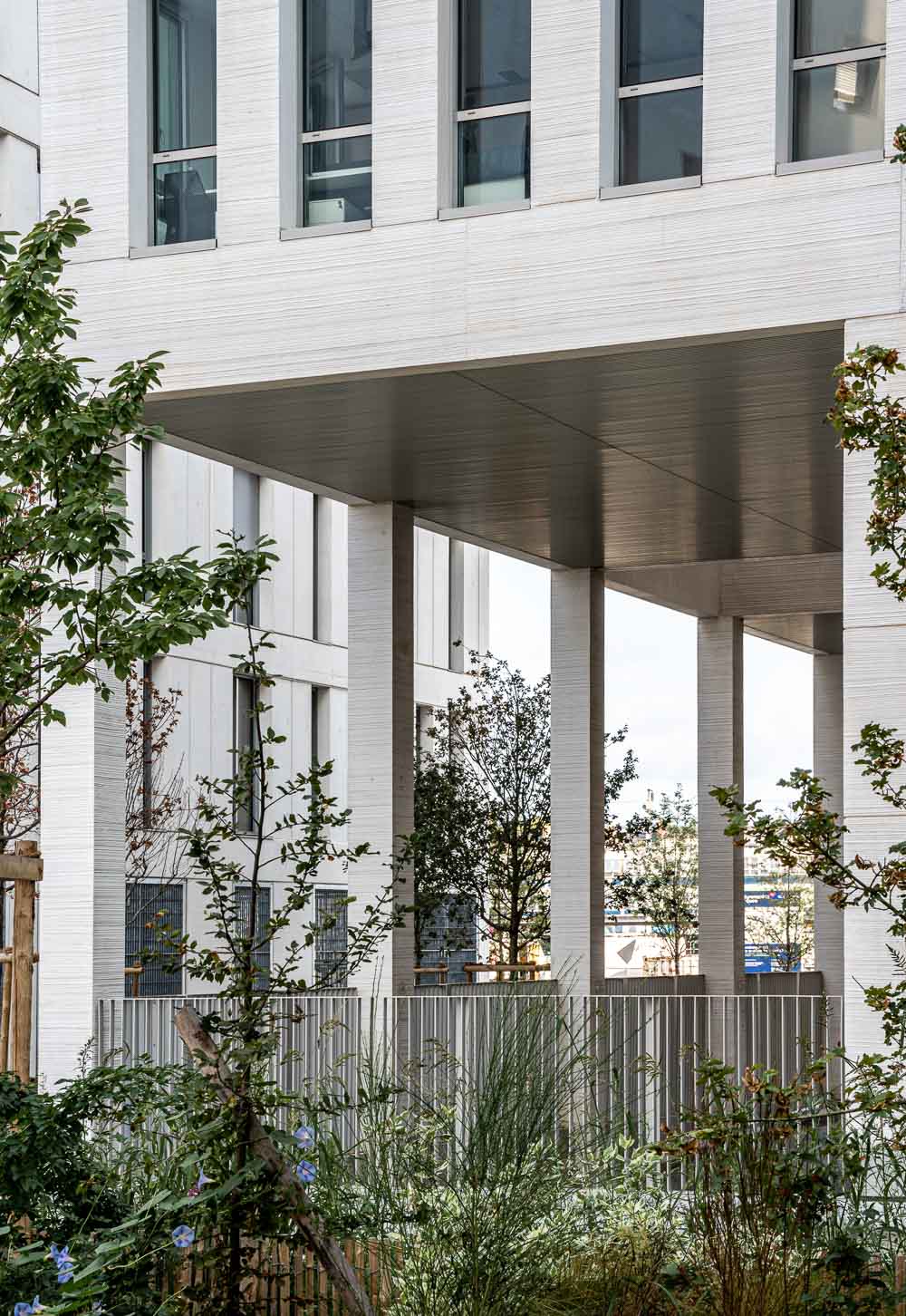 The building strongly takes into account the “volume of the pedestrian”. This “volume” translates into a north-south transparency of the building, in the open air, and over a height of two levels, which offers the city additional porosity through its various blocks. In spite of the relative density of this district, with in particular a 50m high apartment building, the fluidity and amenity of the public spaces, essentially made up of pedestrian streets leading to the Jardinndes Pins, is thus preserved.