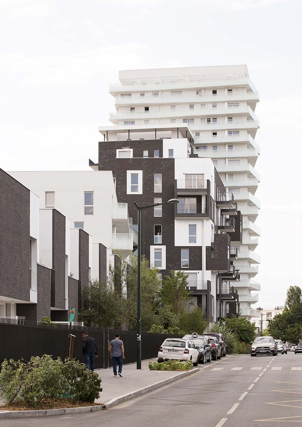 - 건물 C/D에는 129세대가 거주한다. 높이가 각기 다른데, 서로 미끄러지는 듯한 3개의 다른 높이와 재료로 나뉘며 2개의 독립적인 수직 동선에 의해 분리된다. 낮은 볼륨(R+7)은 가벼운 석고로 올라와 있고, 높은 볼륨(R+18),은 가벼운 회반죽으로 이 또한 올라와서 두 개의 다른 볼륨들을 마주하고 있으며, 중간 볼륨(R+12)은 어두운 벽돌로 이루어져 있다.