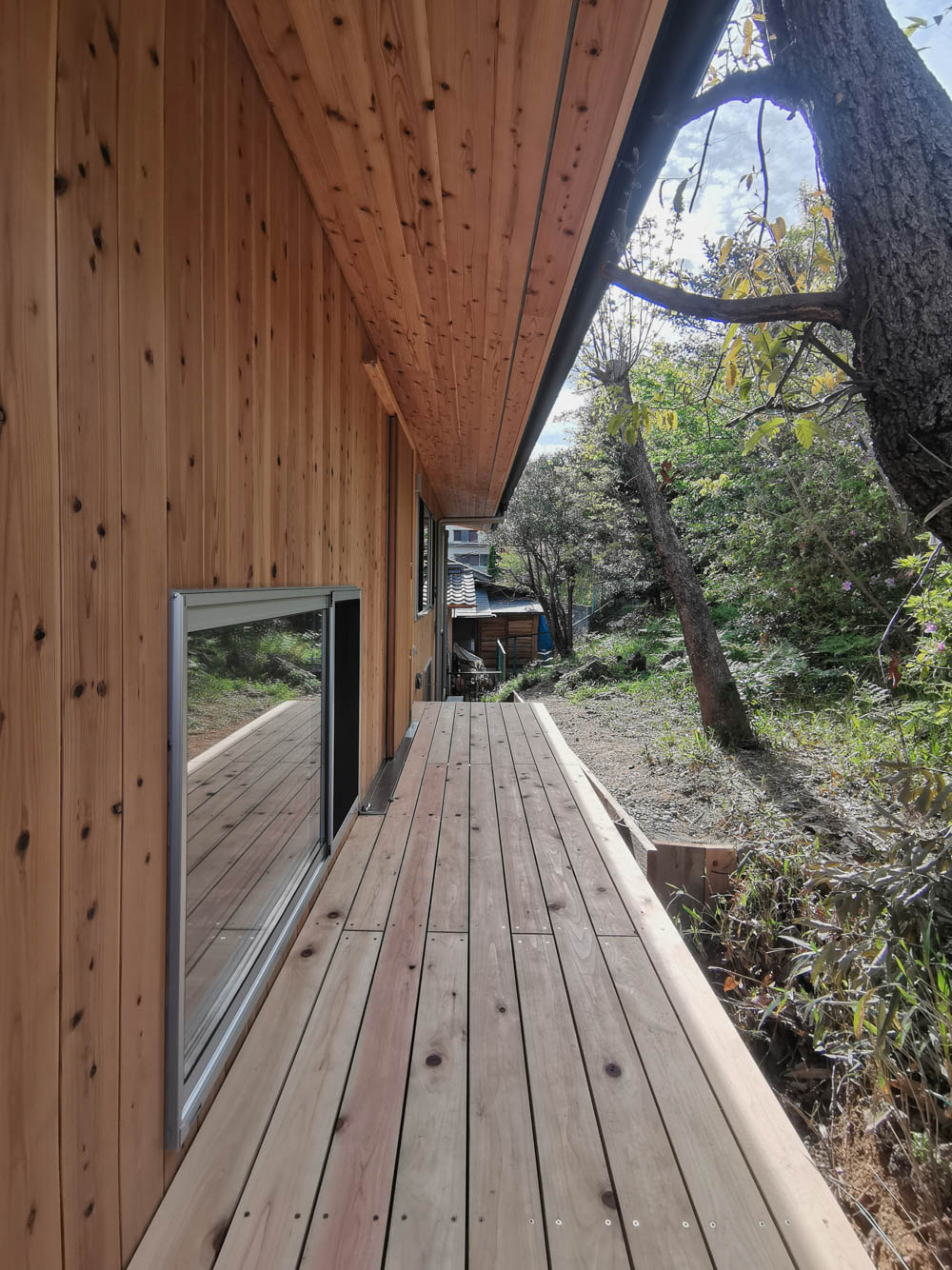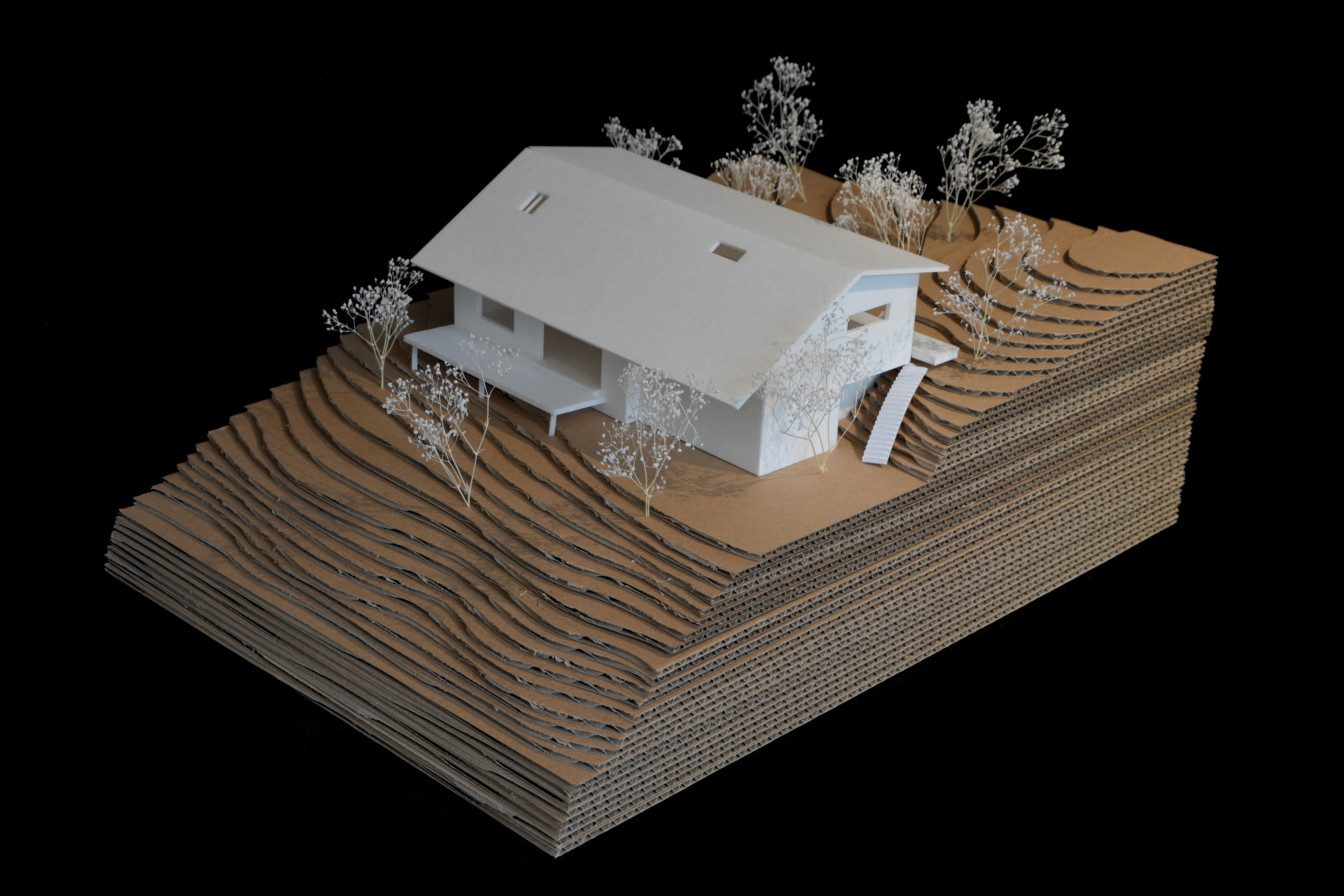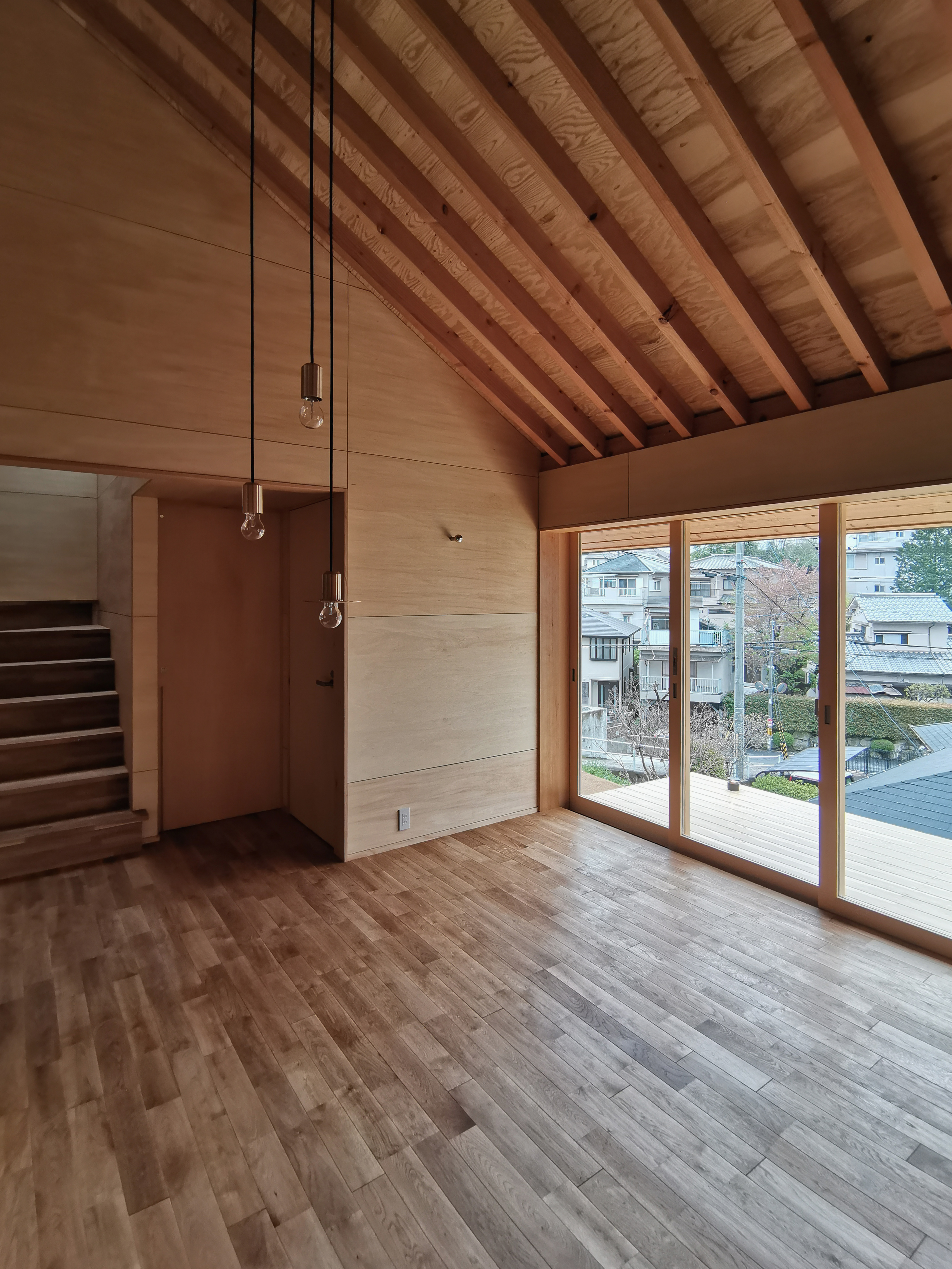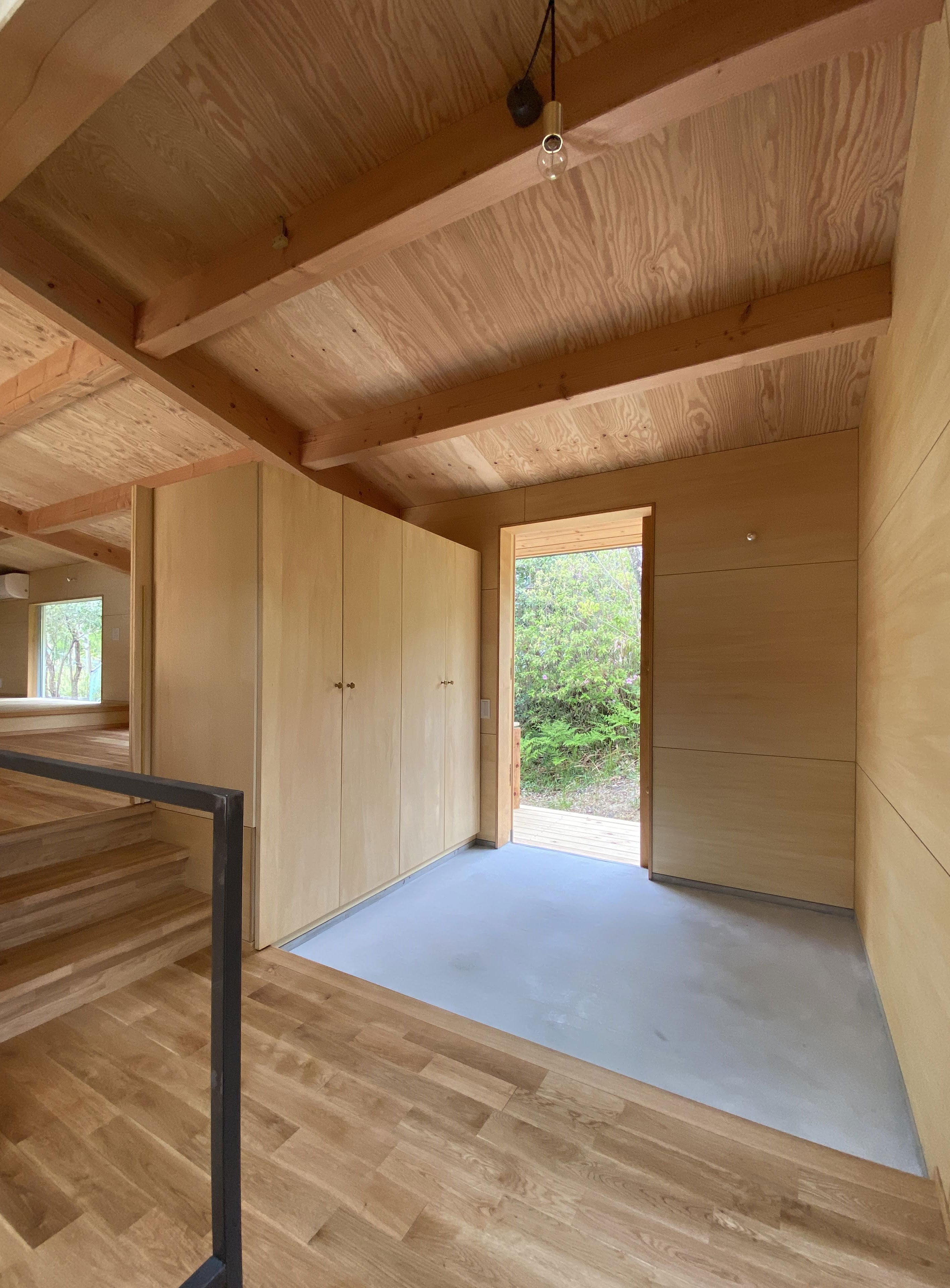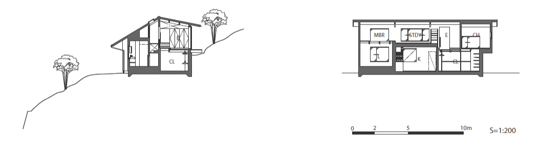 소우 하우스는 히가시이코마에 좁은 길을 따라 올라가는 경사지 한 켠에 세워졌다. 남쪽으로는 경사진 땅이, 북쪽으로는 아주 작은 평지와 녹지가 있지만, 건축하기에는 까다로운 조건으로 불리는 ‘포기하도록 만드는 대지’이기도 했다. 건축가는 그 지형적 특성을 살려서 설계를 시작했다. 외부 공간과 집이 연결되길 바란 건축주는 “나무 데크가 있는 1층 집에, 중층에 침실을 만들고 싶다”고 요청했다. 하지만 1층 집을 계획하기엔 좁은 대지면적을 생각해 침실로 사용될 2층을 기준으로 각 실의 층수를 조정하면서 설계안을 조정해 나갔다. 2층의 서재에서 계단에 걸터앉으면 남쪽의 경사지와 북쪽의 펼쳐진 초록이 보이며, ‘언덕에 둥지를 틀고 있다’라는 느낌을 받을 수 있다. 서재의 창을 통해 들어오는 시원한 바람과 산새들의 노래, 고양이들이 떠드는 소리들이 모여 집을 아늑하고 평화로운 보금자리로 만든다. 이를 통해 외지고 경사진 대지의 새로운 보금자리가 생겨날 수 있었다.