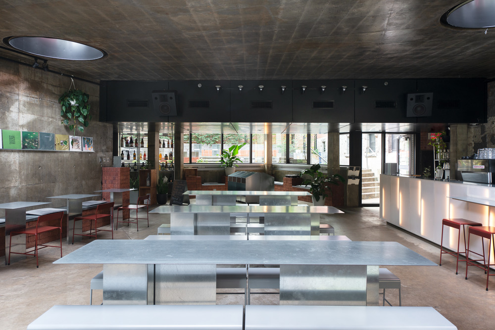이 공간의 스타일과 역사적 세부 사항에서 영감을 받은 디자인팀은 리모델링을 통해 고유한 특성을 유지하면서 더욱 상징적으로 만들기를 원했다. 인테리어와 가구까지 모두 주문제작으로 진행됐다. 공간 중앙에 있는 긴 아연 도금 강철로 된 공동 테이블은 공간에 통일감을 준다. 각진 벽을 따라 늘어선 벽돌 벤치는 인근의 오래된 건물의 노출된 기초에서 영감을 받았다. 그 결과 다양한 차원에 적응할 수 있는 다재다능하고 차분한 공간이 탄생했다.