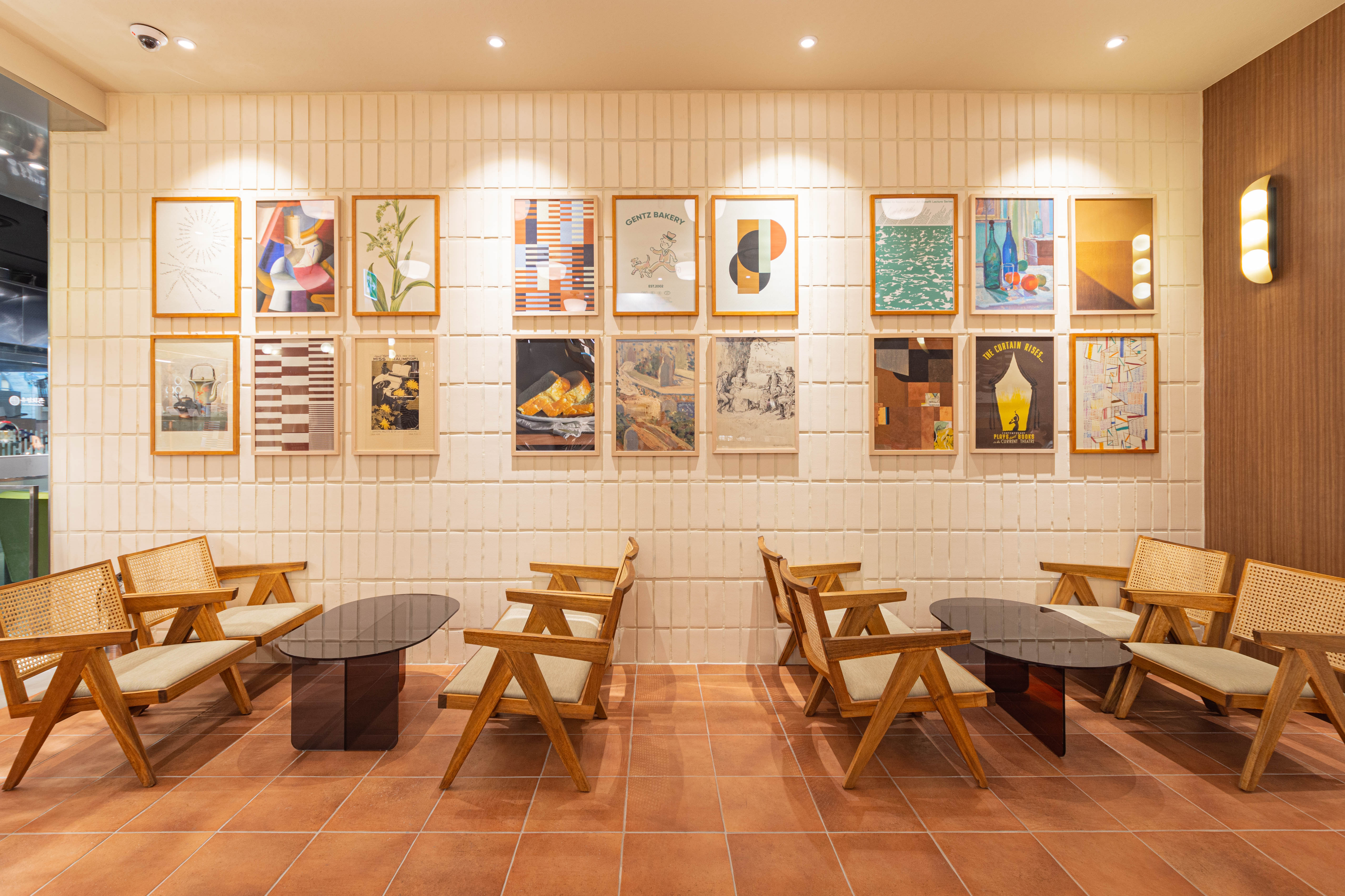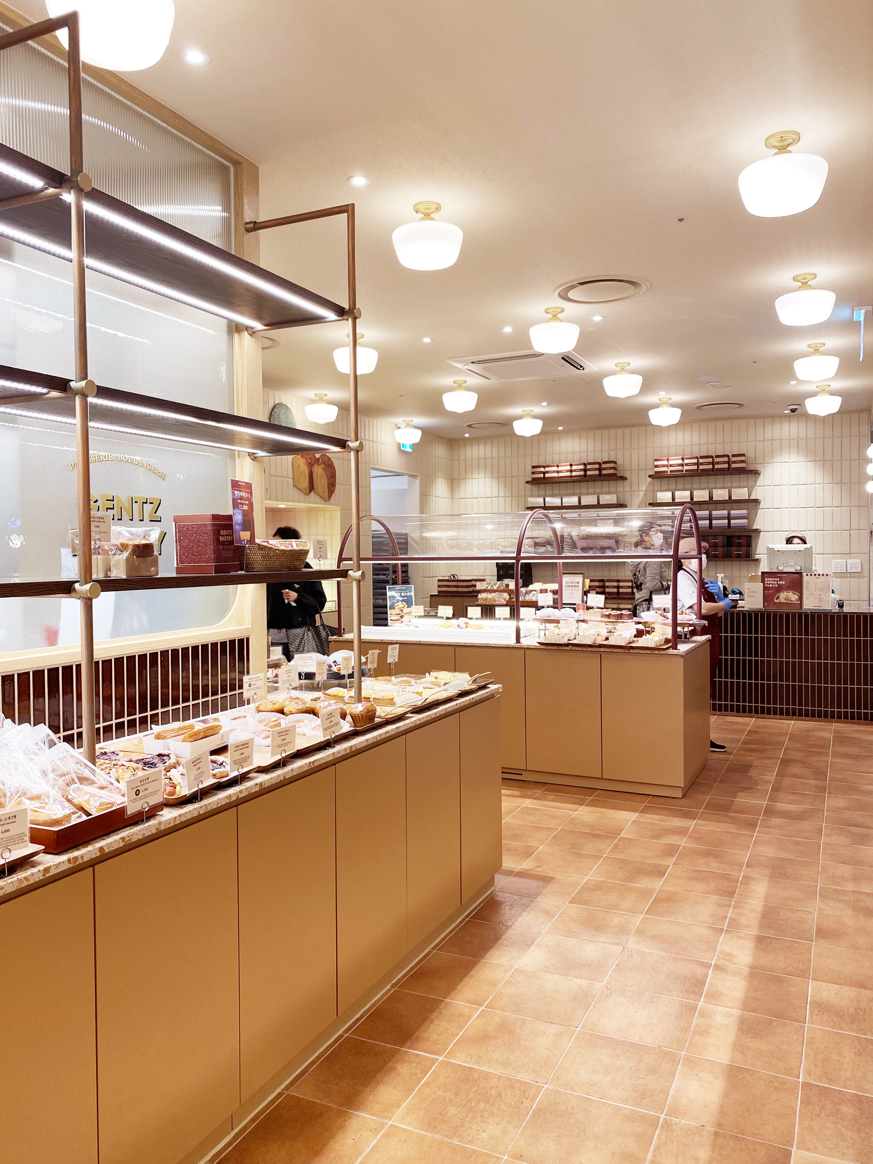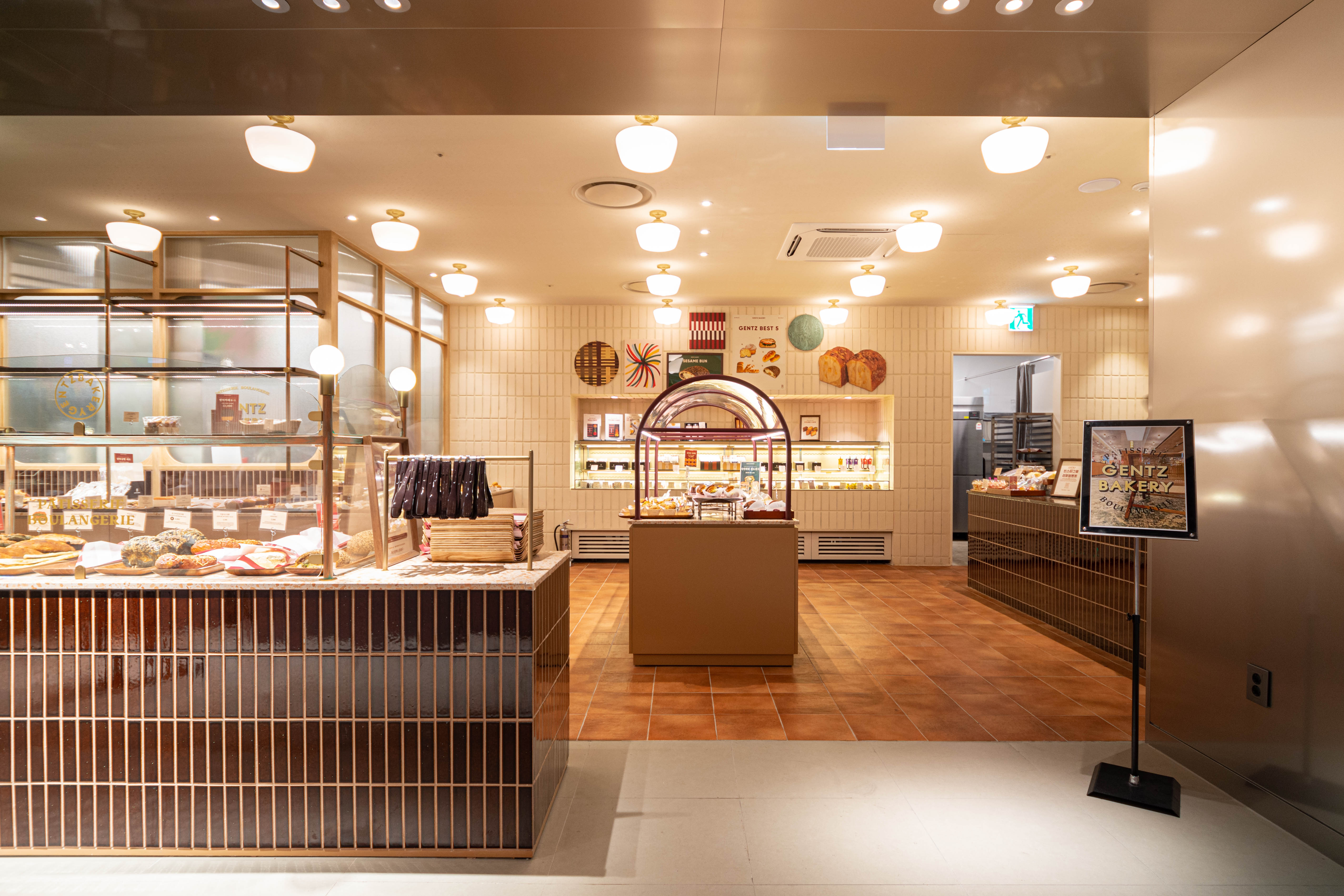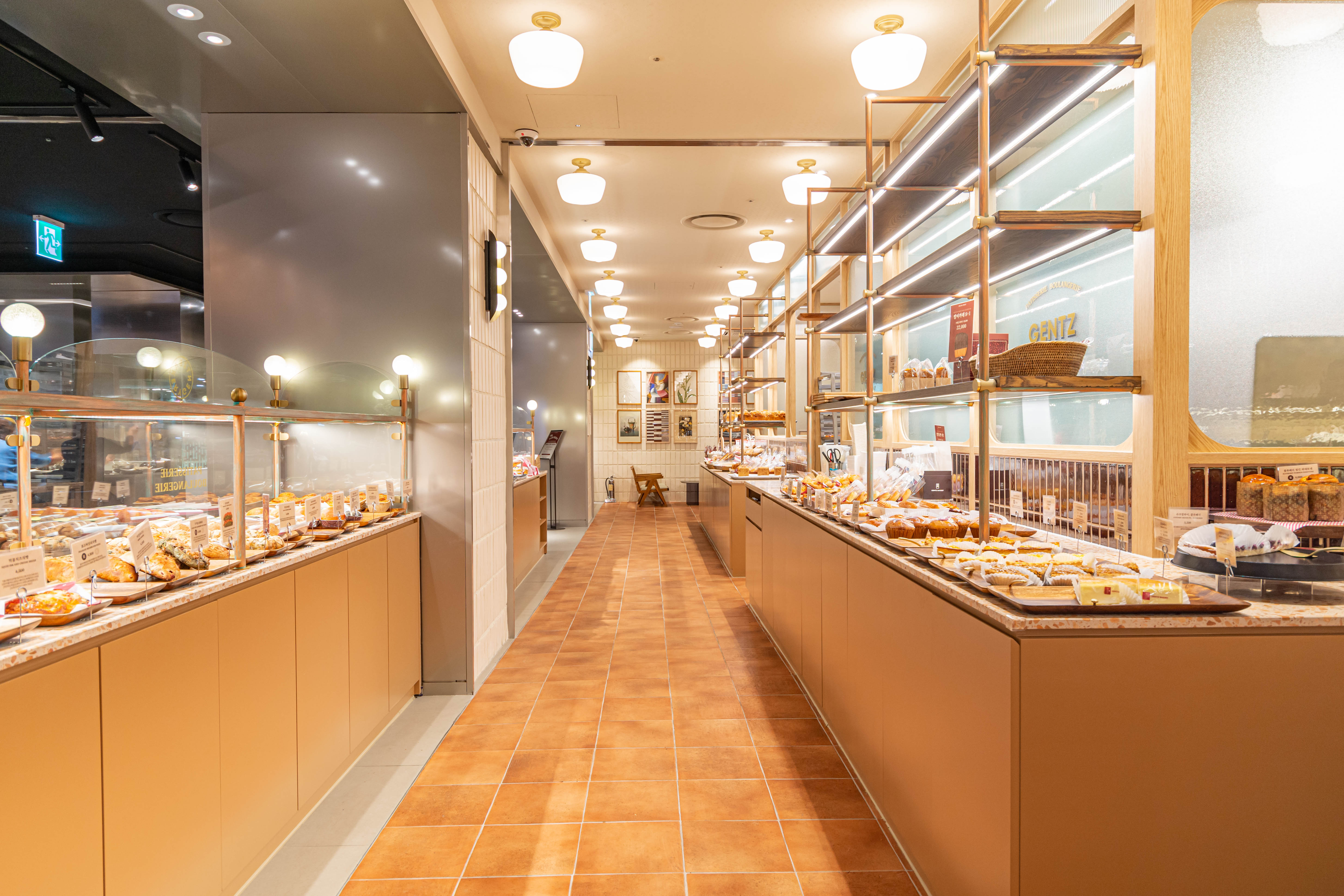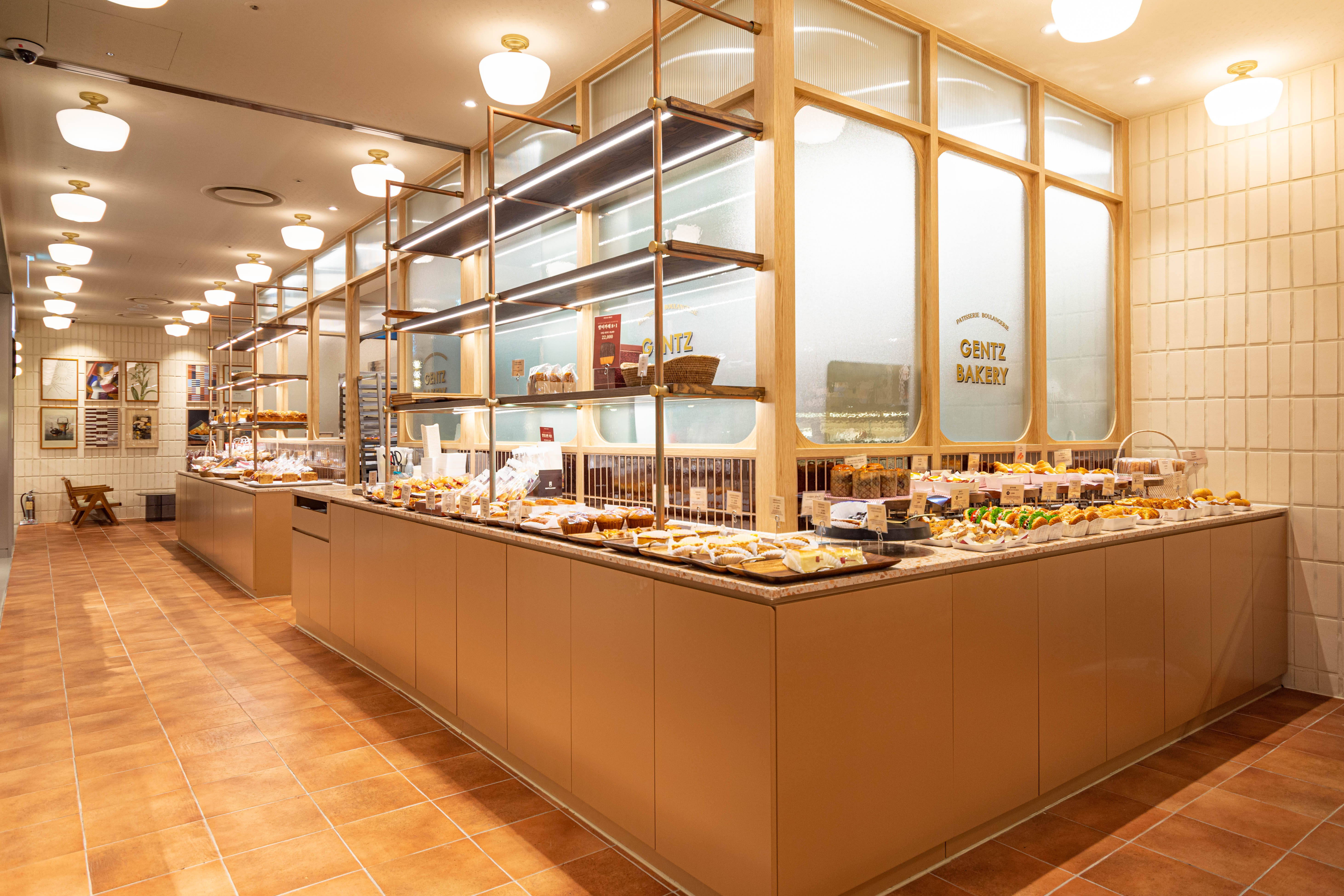 Due to the spatial constraint of being located inside the food hall of a department store, and due to the nature of the kitchen where there is a series of large ovens that require baking every hour, there was a limitation in creating a pleasant floor plan layout that allows customers to experience the brand. The products area where the bakery products are displayed and area where the tearoom and goods are located were intentionally separated to structure the space as if a new space derived from a single brand is located in a shop-in-shop concept. As for the use of materials, the tearoom was planned to allow customers visiting it to experience the new brand image through a design that reinterpreted the nostalgia for old things in a modern way by arranging modern materials that have a strong color combination with materials that have an old nostalgic sentiment, such as Gentz’s exclusive wallpapers, patterns, printed tiles, terracotta, marble, and terrazzo.