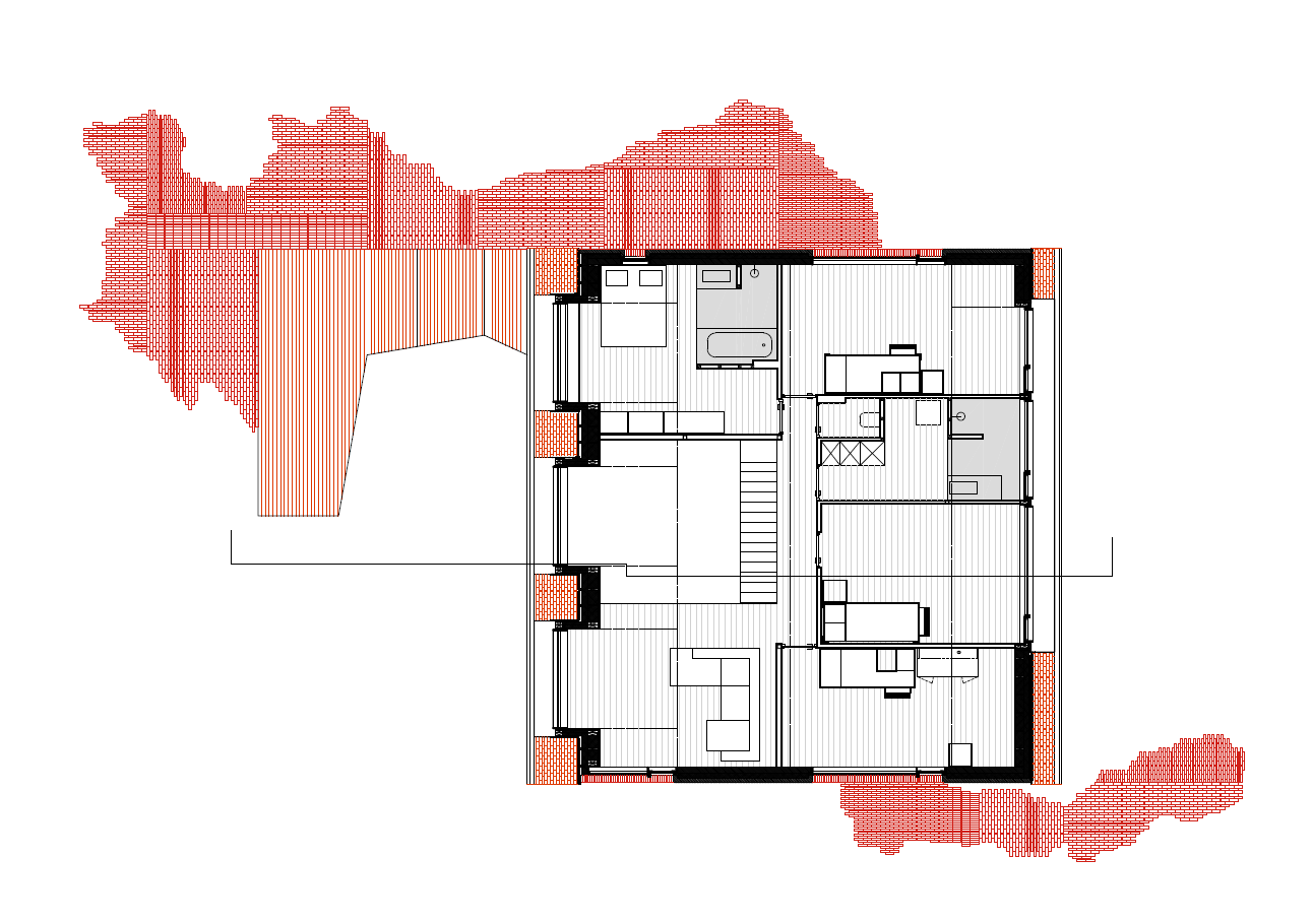 가족을 위한 집이자 플랑드르 지역의 전형적인 집의 형태를 보여주는 엘앤디 하우스는 주변 전망과 연결된다. 지붕의 경사와 재료 그리고 집에서의 전망을 활용함으로써 완성된 것이다. 지붕은 전망에 들어맞으며, 주변 환경을 향해 강렬한 형태를 만들어내고, 마치 피난처처럼 집을 감싼다. 이 집은 사각형의 평면을 가진 정원과 각각 다른 전망을 바라보는 일련의 창문들에 의해 율동이 생기는 집약적인 볼륨이다. 아이들의 방은 가파른 지붕 경사 아래의 정면에 위치한다. 각 실들은 각각의 박공지붕을 소유하고 있다. 지붕 경사는 세 개의 개방구와 함께 풍경 속으로 뻗어 나간다. 이 모든 것은 주위를 향한 강렬한 형태를 창조한다. 이 집은 자연적 재료의 활용을 통해 ‘영혼’을 불어넣는다. 외부는 구운 진흙으로 빚어진 볼륨을 닮았고, 내부는 많은 목재와 테라조를 통해 따뜻한 느낌을 준다.