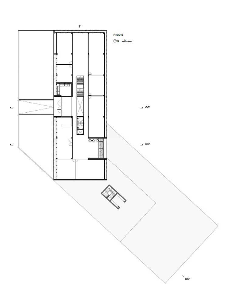 The New Headquarters and Warehouse of the company Aníbal Cristina is located in Pousos, Leiria, near the access to the A1 highway. The site has tree cover consisting of woodland, mainly pine trees and eucalyptus, which is part of Rede Natura. The architectural proposal results from both the programmatic premises and the plastic possibilities of concrete, as a material substance, and the know-how of AOC, in its activity, projection and stability. The program consists of offices, warehouses and garages, as well as an outdoor park including a tennis court, a lake and a cycle and pedestrian maintenance circuit. The project envisages a building subdivided into two distinct program: two floors of offices with entrance to the south and one floor of garage/archives (which also houses a 100 m2 training room in amphitheater) opening to the west. To this construction is attached a warehouse that is recessed into the land at a lower level, also opening to the west. Thus, we have two floors above the ground level of the building and two floors below, the latter being set in a drawer so as to have direct access to the exterior, namely 1st floor and 2nd floor. The exterior space incorporates an access road to the building and parking and manoeuvring areas dedicated to each functional component.