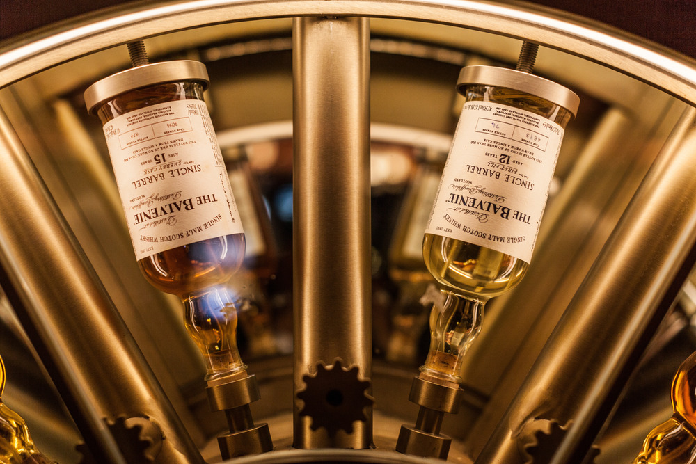 전체 공간의 초점은 중심축을 중심으로 무대의 중심을 이루는 황금색 턴테이블이다. 은행 금고의 턴테이블에서 영감을 받았으며 "Exchange Bar"의 "Exchange"을 표현한다. 턴테이블에는 위스키병들이 진열되어 있다. 로비 측면에 있는 바 뒤에는 두 개의 금고형 공간이 있다. 스테인리스 스틸로 된 칸에 고객의 와인을 보관한다. "Account room"의 벽은 주판으로 장식되어 있다. 주판 구슬은 빛과 그림자 영역을 통해 흐릿한 느낌을 형성하여 신비로움을 더한다.