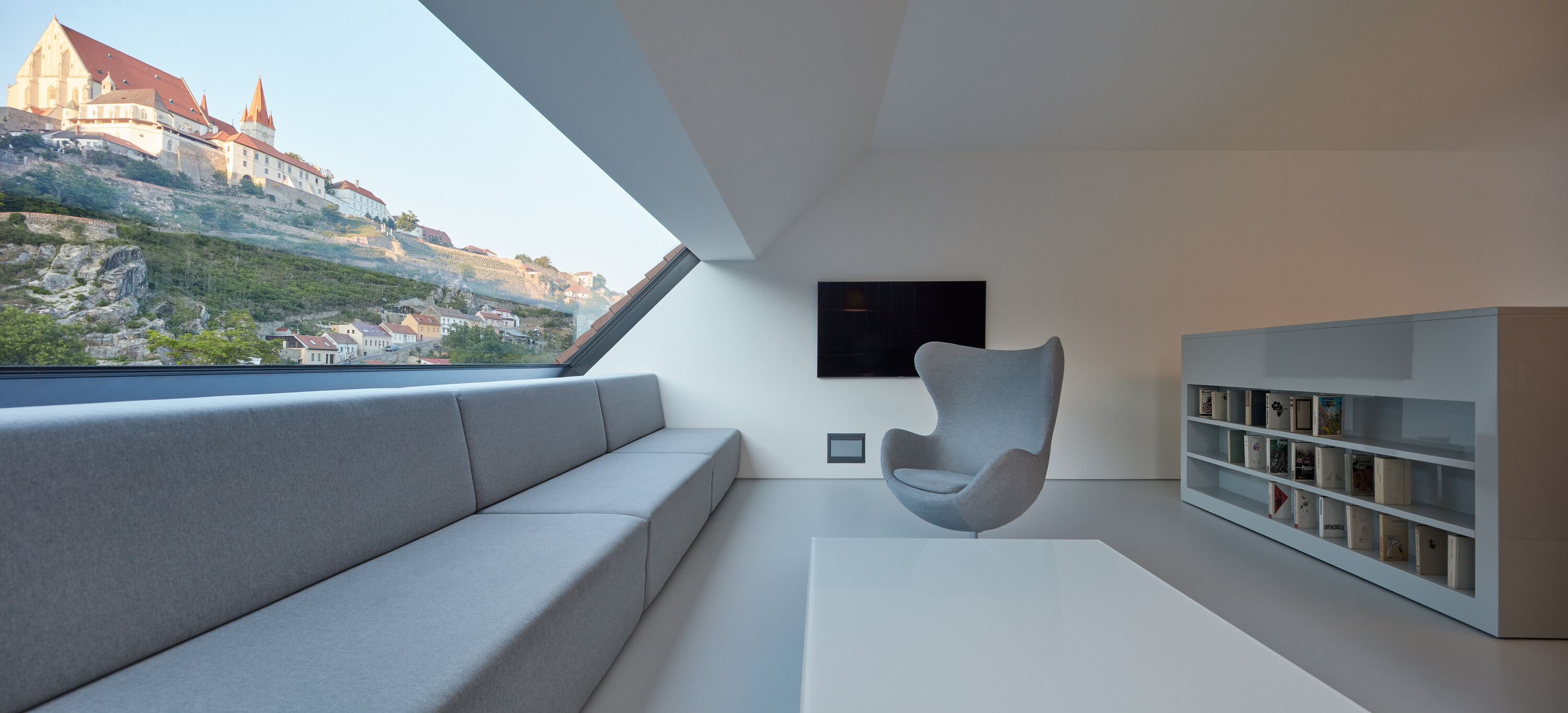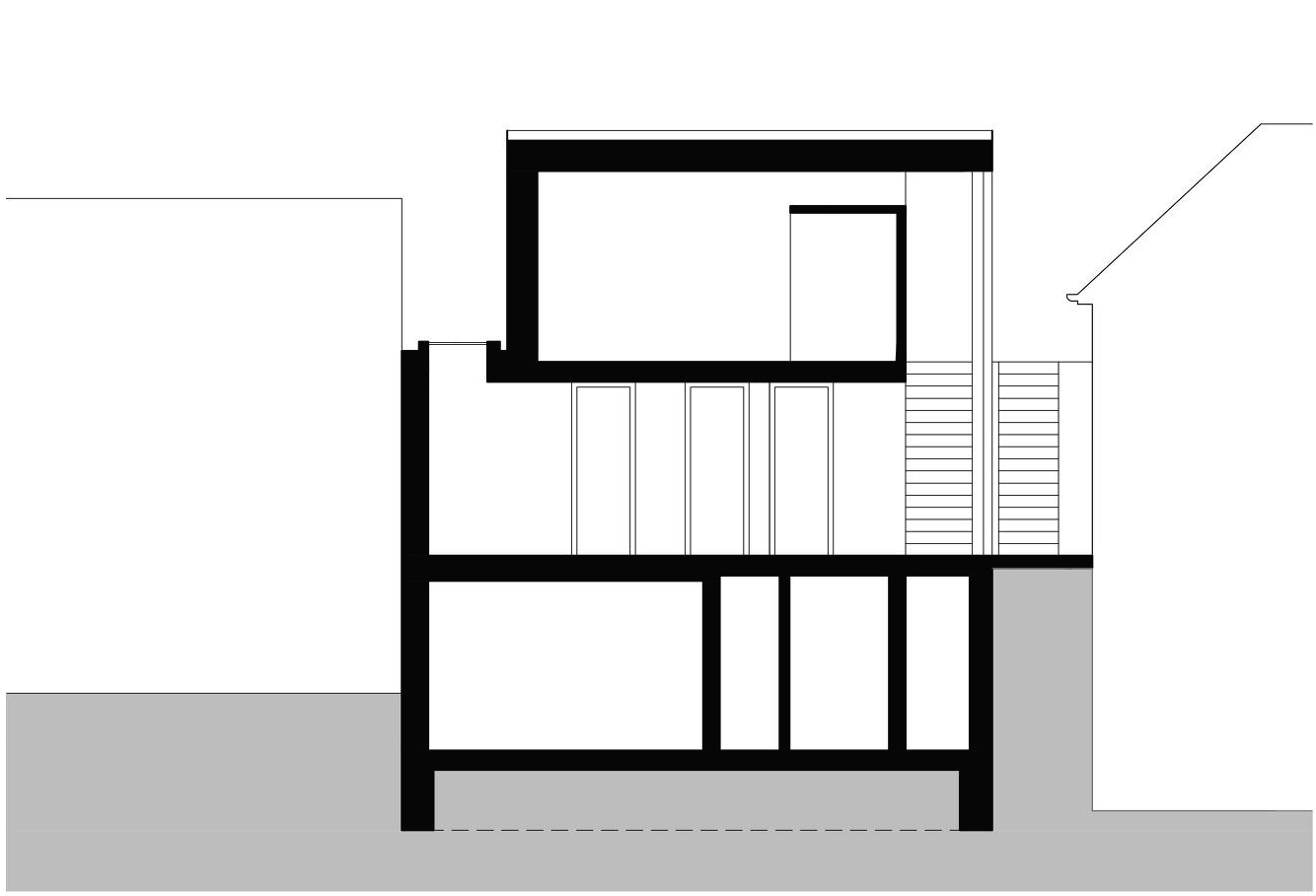 The site is situated in a gap between family houses that form the banks of the Dyje River. Steep terrain of the plot has the original terrace landscaping with stonewalls. The surrounding houses are mainly family houses or blocks of flats with one or two floors.