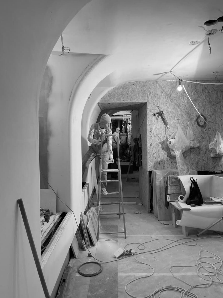 In addition to introducing the Italian flair, one of the main objectives was to transform the existing dark space of the basement into a well-lit airy space that would not oppress the visitor. The task seemed very difficult, even impossible at some point. The main architectural device in working with the interior space was the vaulted ceiling. Not only it refers one to church architecture, but erases the boundary between the ceiling and the walls, while maintaining the height of the hall to a maximum extent. At the same time, the domed ceiling hides a large number of engineering networks. By applying divergence of window jambs, we were able to let as much light into the hall as possible, make it more airy. This technique is traditionally used in churches.