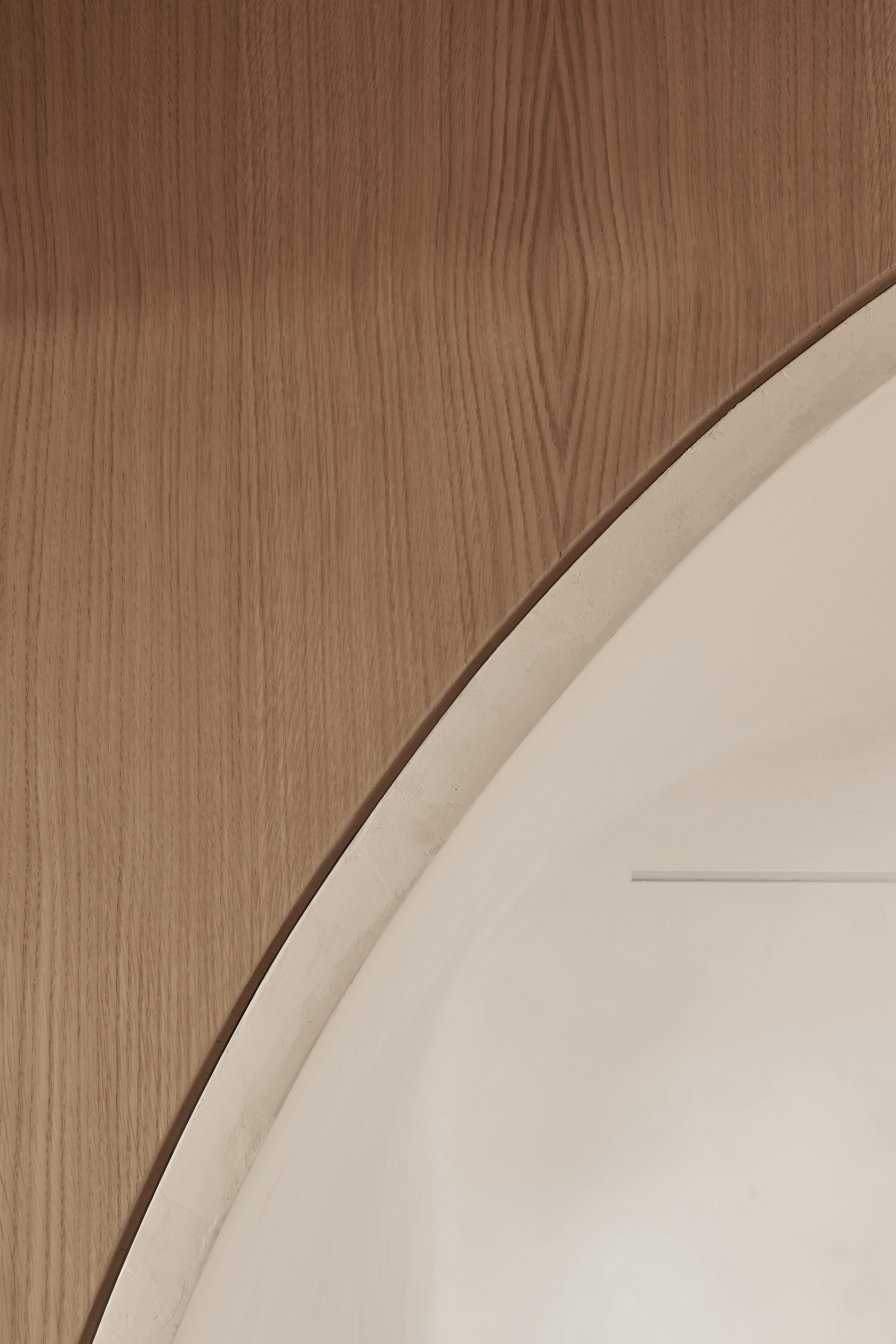 We wanted to create a very pure and minimalistic look, using expressive media to the slightest extent. This is why we used only three basic materials: travertine, which is often found in paving of Italian streets, wood for the furniture and wall panels, and light-colour plaster as the main material for the walls. All this helped us to convey the image of Italy.