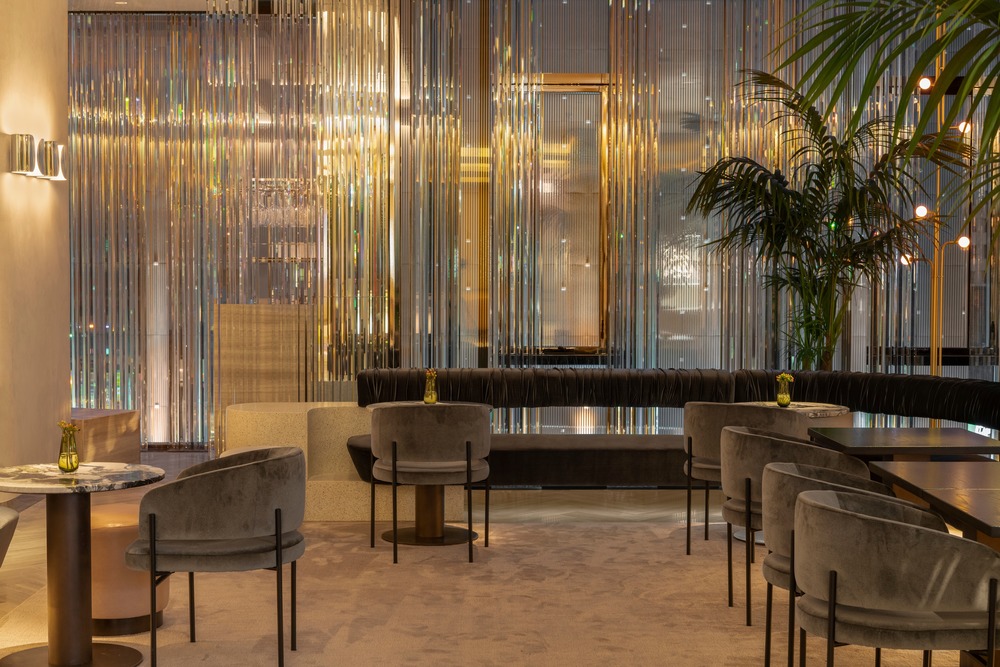 For The Four Seasons Hotel Montreal, Atelier Zébulon Perron helped develop a new concept, the Social Square. This sprawling third-floor space represents the city’s characteristic social ecosystem, where both hotel guests and locals are welcomed to eat, drink, and experience the hotel’s unique luxury ecosystem. The Social Square encompasses both the hotel’s lobby as well as MARCUS, a lounge, bar, restaurant and terrace concept by Michelin-starred chef and restaurateur Marcus Samuelsson. No matter from where they arrive—whether from the hotel, from the street, or the adjoining Holt Renfrew Ogilvy luxury department store—visitors can always access MARCUS, a space completely integrated into the ethos of the hotel, the neighborhood, and the city. The lounge, bar, restaurant and terrace of MARCUS represent four distinct worlds that overlap and complement each other, while each seamlessly blends into the hotel’s contemporary architecture. In a reference to chef Samuelsson’s seafood creations, the lounge suggests a theme reminiscent of the ocean. In contrast, the bar gives the impression of being in an enchanted forest, offering an exclusive, intimate experience. The restaurant’s charm lies in its combination of opposites, balancing elegance and warmth with minimalism and modernity.