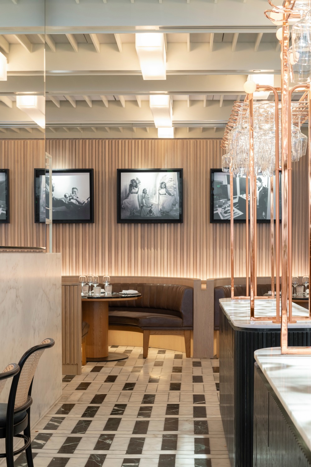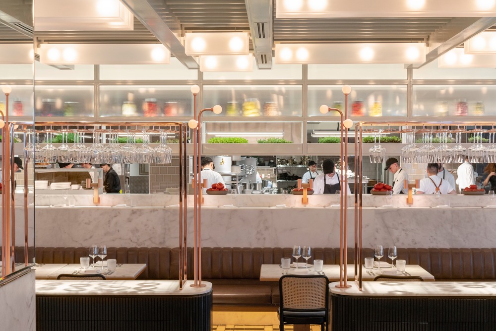 From acoustics, to lighting, to ergonomics and scale, no detail has been overlooked—everything from the positioning of the furniture to the ceiling heights is treated as an opportunity to encourage interaction. The project was driven by a desire for durability and timelessness, as shown by the choice of colors and premium materials including marble, brass, white oak and velvet. Atelier Zébulon Perron played with volumes and materials to create an unforgettable interior that manifests a social, sensory experience. But most importantly—from the crab in its glass cube that greets visitors in the foyer, to the display of seafood delicacies and the luxurious cold room at the restaurant’s entrance, the designers remind us that at MARCUS, it is ultimately the cuisine of chef Marcus Samuelsson that still takes center stage.