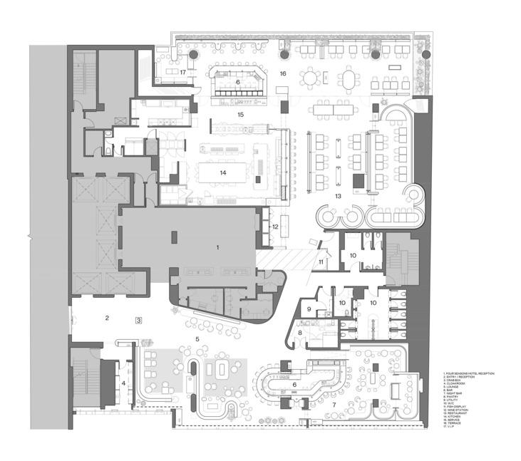 포시즌스 호텔 몬트리올을 위해 Atelier Zébulon Perron은 소셜 스퀘어라는 새로운 개념을 개발했다. 이 3층 공간은 호텔 투숙객과 현지인 모두가 호텔 특유의 럭셔리한 공간을 즐기고, 마시고, 체험할 수 있는 도시 특유의 사회 생태계를 대표한다. 소셜 스퀘어는 호텔 로비뿐만 아니라 거리, 인접한 Holt Renfrew Ogilvy 백화점에서 접근할 수 있다. MARCUS는 호텔, 동네, 도시와 완벽하게 통합된 공간이다. MARCUS의 라운지, 바, 레스토랑, 테라스는 서로 중첩되고 상호 보완되는 4개의 각각 다른 공간으로 나뉘어 진다, 각각 호텔의 현대 건축물과 매끄럽게 어우러진다. 셰프 Marcus Samuelsson의 해산물 요리에서 영감을 얻은 라운지는 바다를 연상시킨다. 대조적으로, 바는 마치 숲에 있는 듯한 느낌을 주며, 독점적이고 친밀한 경험을 제공한다. 레스토랑의 매력은 극과 극으로 조화를 이루며 우아함과 따뜻함을 동시에 미니멀리즘과 모던함이 조화를 이룬다는 데 있다.