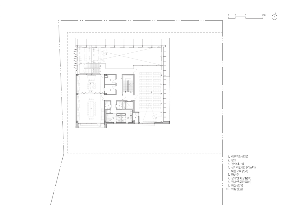 The second strategy was to satisfy the insufficient public construction cost through the construction of a factory at osphere full of raw materials and surfaces and to express the unique spatiality of dynamic production space. Like the blending that creates a new coffee with a variety of flavors and aromas by adding other beans to one coffee bean, the Coffee Cultural Center is a space where coffee meets culture and experiences are added to education. It is also a cultural complex that expands by adding the elderly, welfare, and jobs one after another. The Nono Cafe and Experience Center are configured as a factory-scale central space with a height of 2-3 stories, and in the large-scale space, various programs are offered. We pursued a blending space of experiences that could be connected and mixed in a visually, olfactory, auditory, and tactile sense along with the strong aroma of coffee and the sweetness of desserts.