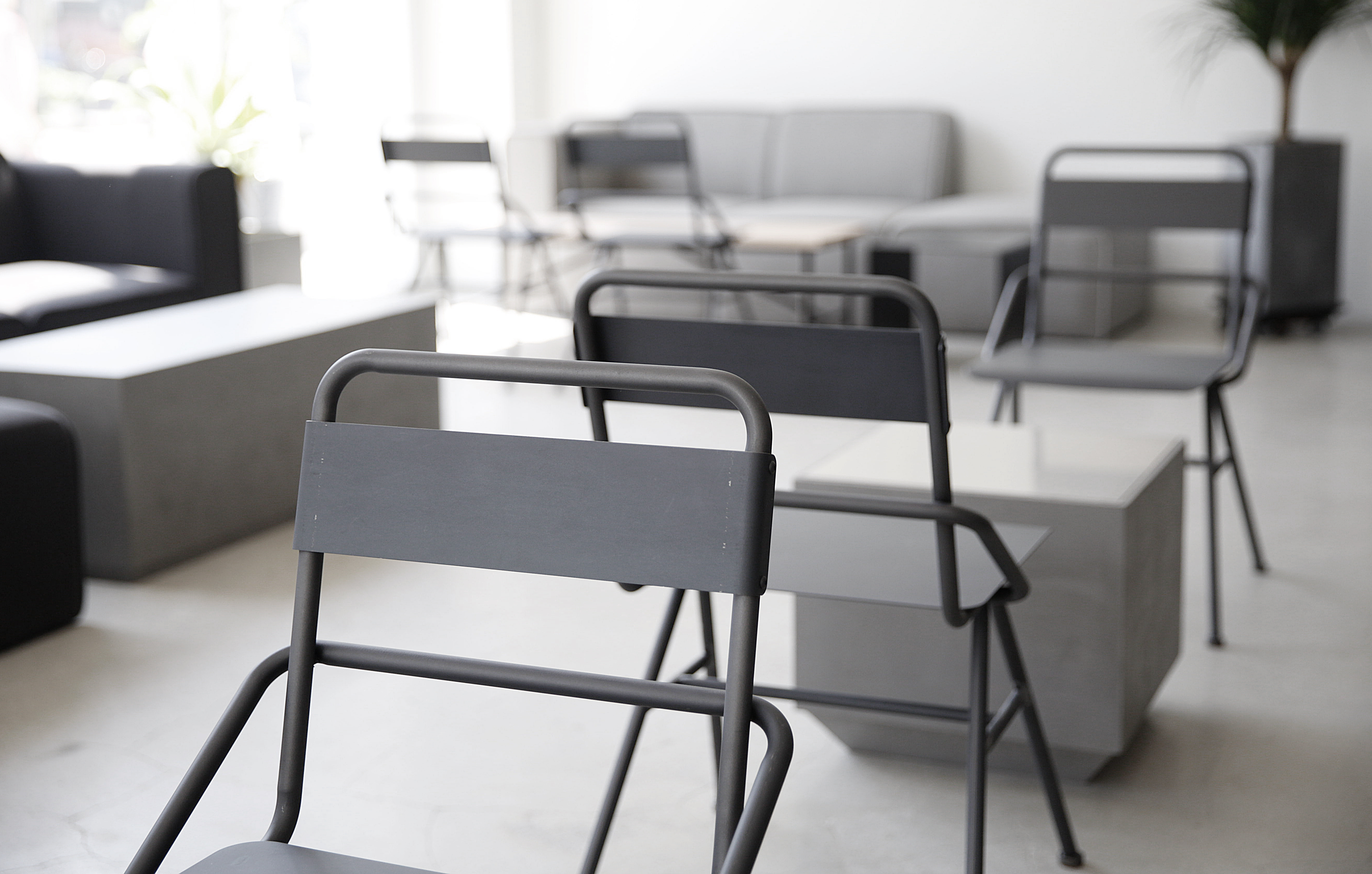 The dining chair of the series of KOVY produced by the JOONGHO CHOI STUDIO is composed of materials to discolor easily for presenting the distinctive character. Utilization of metal frame under the process of maximizing each special character is influenced on establishing a sense of stability. The way for sustaining the feel of raw materials with a welding mark and coarse treatment is also harmonized with the furniture of KOVY produced by the JOONGHO CHOI STUDIO. Especially, the chair, the furniture of KOVY series, is designed on the considerate engineering frame focused on helping customers feel comfortable under the consideration of the structure of a human body through the sense of stability with the aesthetic line and the back of a chair made by an iron.