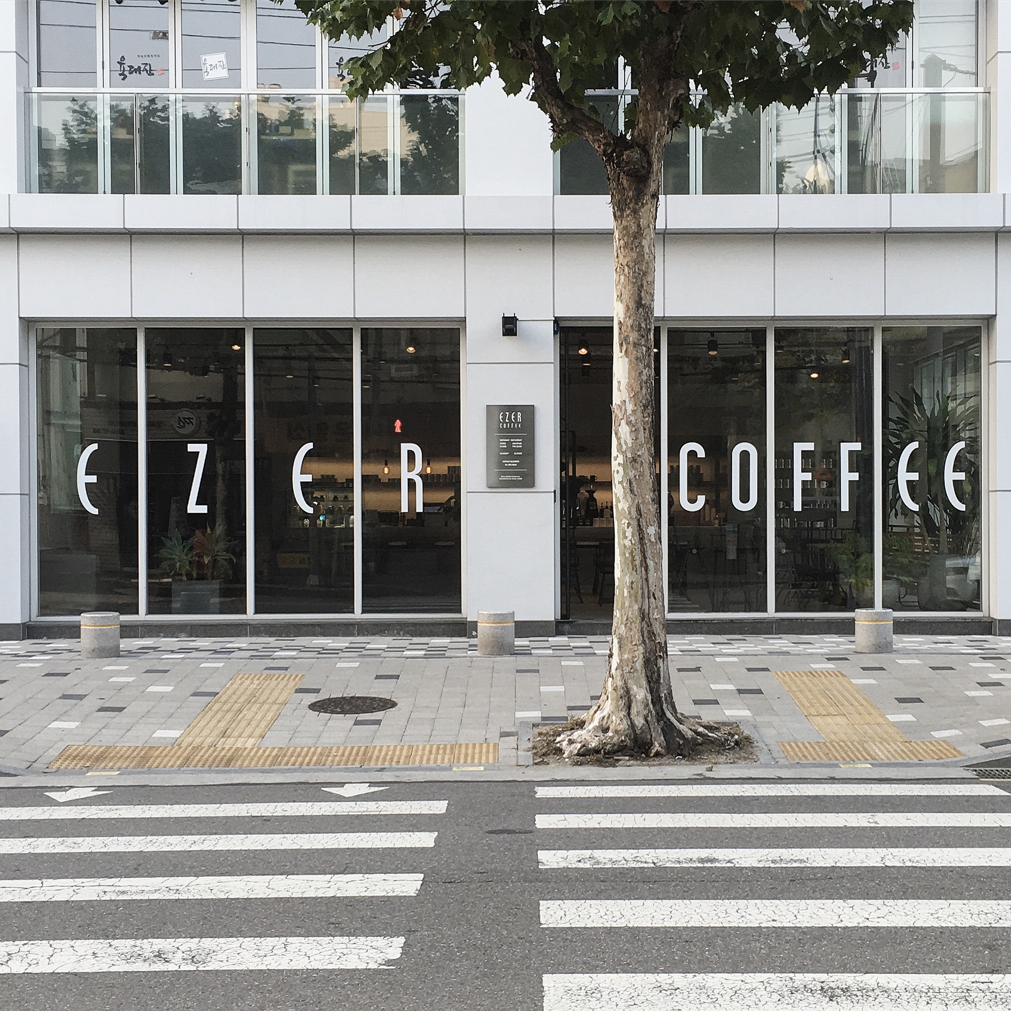평면을 계획하는 데 있어 커피숍에서 일어나는 다양한 특성을 반영하여 균형을 맞추는 데 중점을 맞췄다. 다수의 사람들이 함께 회의하고 이야기를 할수 있는 공간, 오래도록 머물고 싶은 편안한 분위기를 주는 공간, 잠시 쉬어가는 공간 등 다양한 스타일에 맞게 알맞은 가구와 공간을 제시했다. 또한 그러한 기획은 공간의 풍성함을 만들어주었다. 공간에 있는 유리파티션은 동선이 복잡해보일수있는 커피숍 후문과 기능적인 서비스스테이션의 위치를 가려줌과 동시에 사람들에게 무의식적으로 유리파티션 뒤에 기능적 장치들이 있나는것을 느끼게해준다. 주어진 공간안에서 사람의 동선을 고려한 배치를 고민했다. 채광이 좋은 창 주변의 영역은 편하게 앉을 수 있는 소파를 배치했고, 공간의 따스한 톤을 더해주는 우드 벤치와 우드 테이블을 배치했다. 에제르 후문으로 나가는 영역을 컬러유리로 파티션을 주어 카운터 영역에 쓰인 재질과 겹쳐보이는 연출을 의도했다. 공간안에 놓여진 의자는 최중호스튜디오의 코비 시리즈이다.