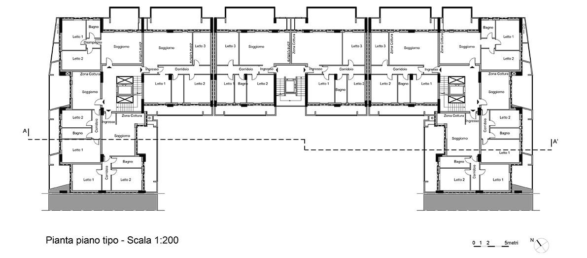 비알레 줄리니 어포더블 하우징은 사회 주택 개입을 통해 바를레타(풀리아)(Barletta, Puglia)의 외곽에 세워진 사회적주택이다. 도시의 남서쪽, 새로운 구역 167지구에 위치한 이 공동주택은 지역을 재활성화하기 위한 대규모 프로젝트의 일부로 거시적으로는 도시와 지역을 융합하는 것이 목표다. 건축가는 이 프로젝트를 위해 ‘실용적인 소형 건축’을 만들었다. 냉정하고 엄격하게 구성되어 있는 이 건축물은 주변 자연 요소가 부족하고, 과시적이며 장식 위주의 해결책, 딱딱한 건축물과  도시 사이의 전형적인 관계와는 대조되는 방식으로 이 도시환경과 관계 맺는다. 지하 주차장과 상업 활동 전용인 1층을 포함해 50세대가 있는 이 단지는 높이 6층, 총 면적 5,000m2에 걸쳐 ‘ㄷ’자 모양의 성벽처럼 보인다.