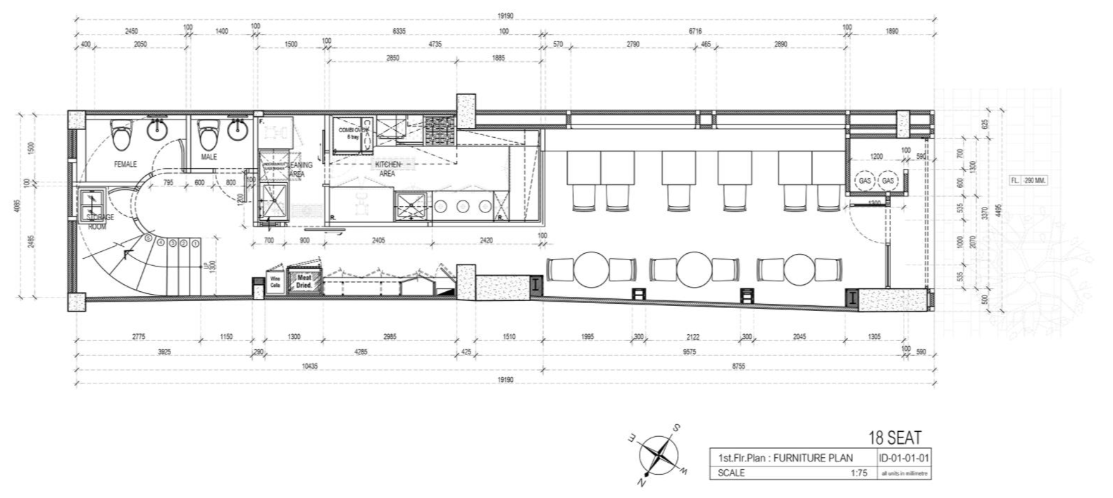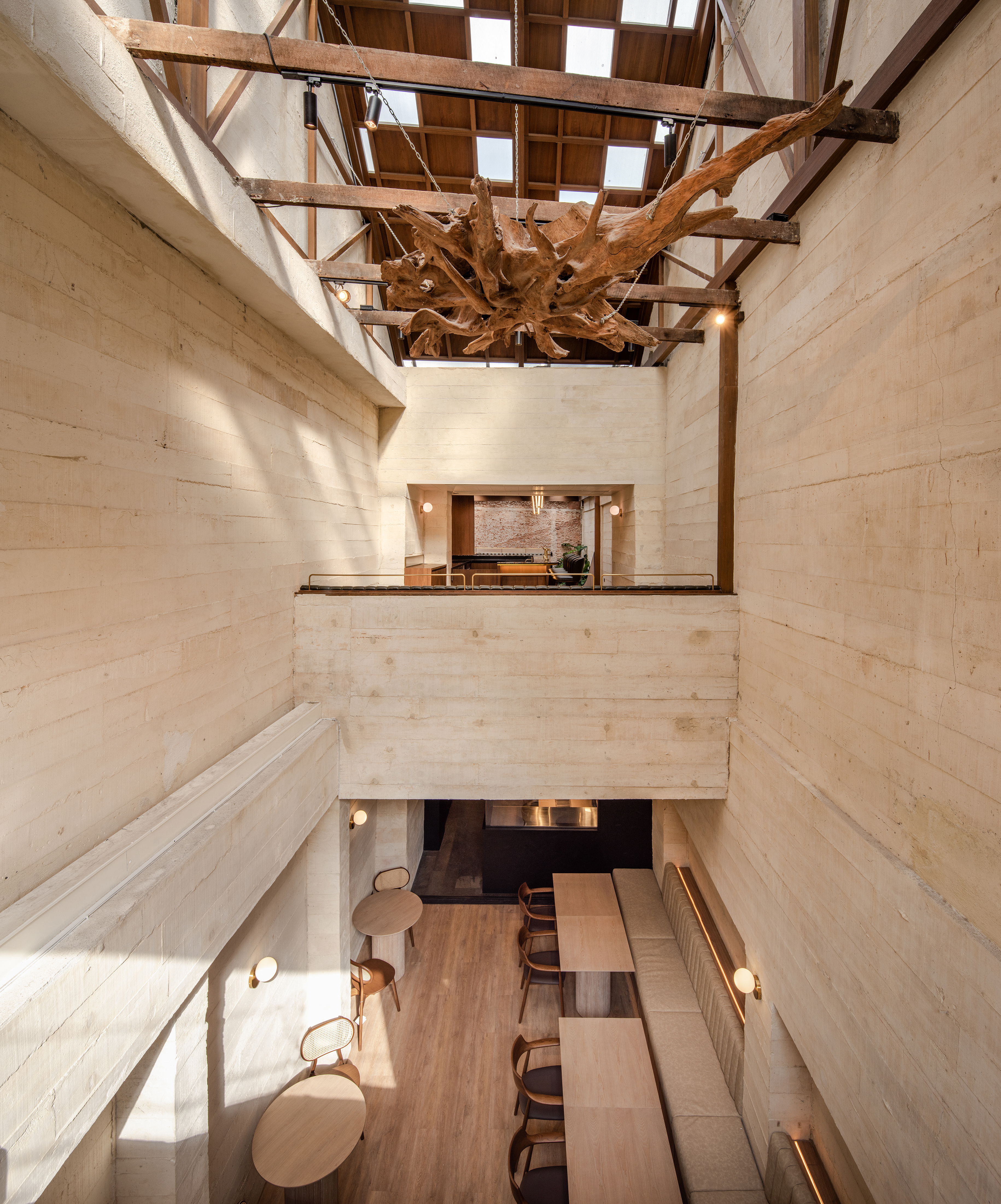 On this 2nd floor, we will be able to see the living art through big frame of window on the façade featuring a big tree that have been on the street of Taladnoi for many decades. This scene has become the symbolic of the restaurant that the designer created to express the sense of co-existence of ‘Mother’ in rich environment of history and nature neighborhood.