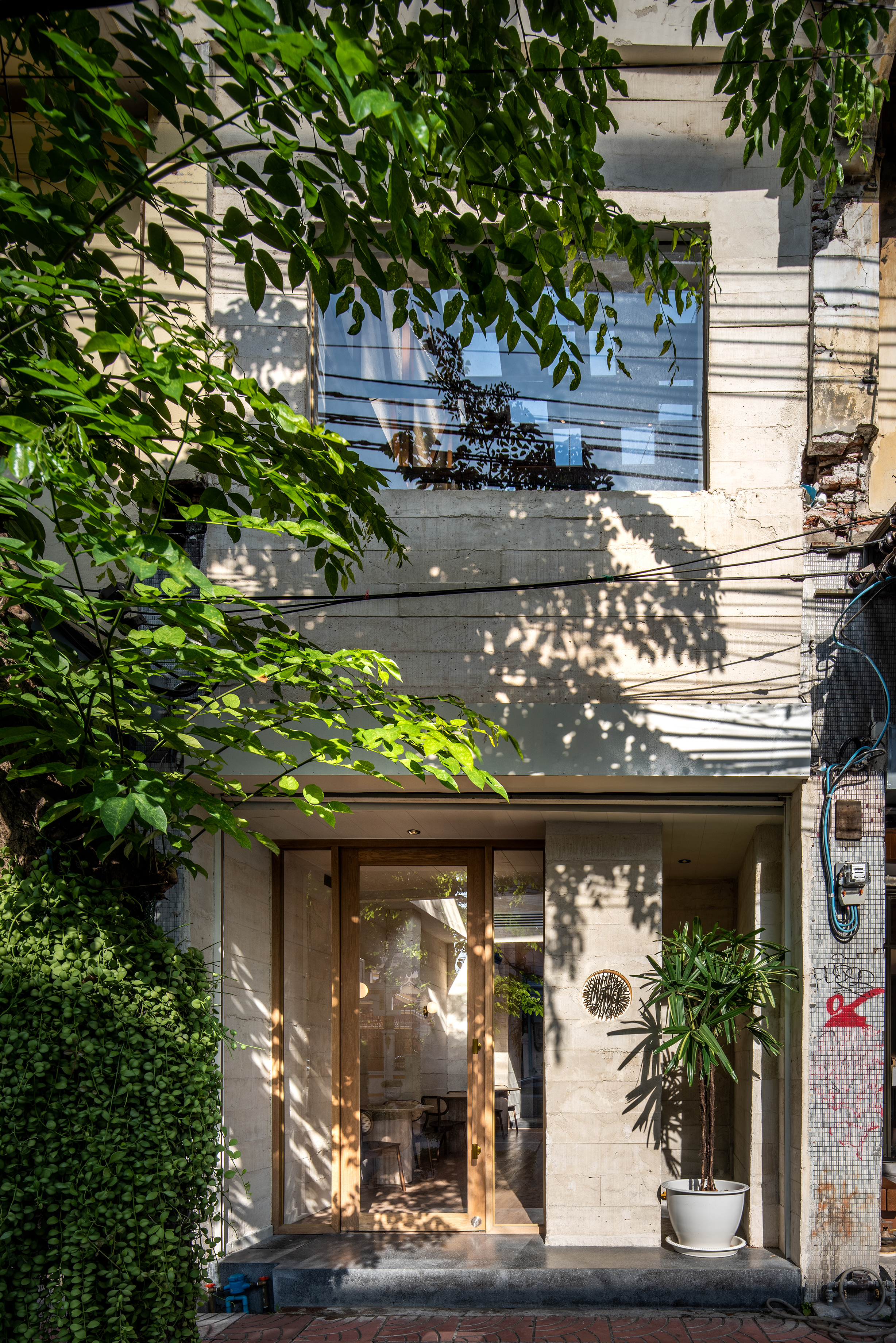 내부로 들어서면 천연 원목 바닥과 회백색의 원목 도장 콘크리트 벽, 특별히 디자인된 투명 지붕이 한데 어우러져 가볍고 생동감 넘치는 공간을 형성해 편안하고 상쾌함을 느낄 수 있다. 디자이너에 의해 재구성된 공간은 무작위로 열린 천장 보드로 들어오는 햇빛과 그로인해 생긴 그림자로 마치 나무 밑에 앉아 있는 듯한 느낌을 준다.