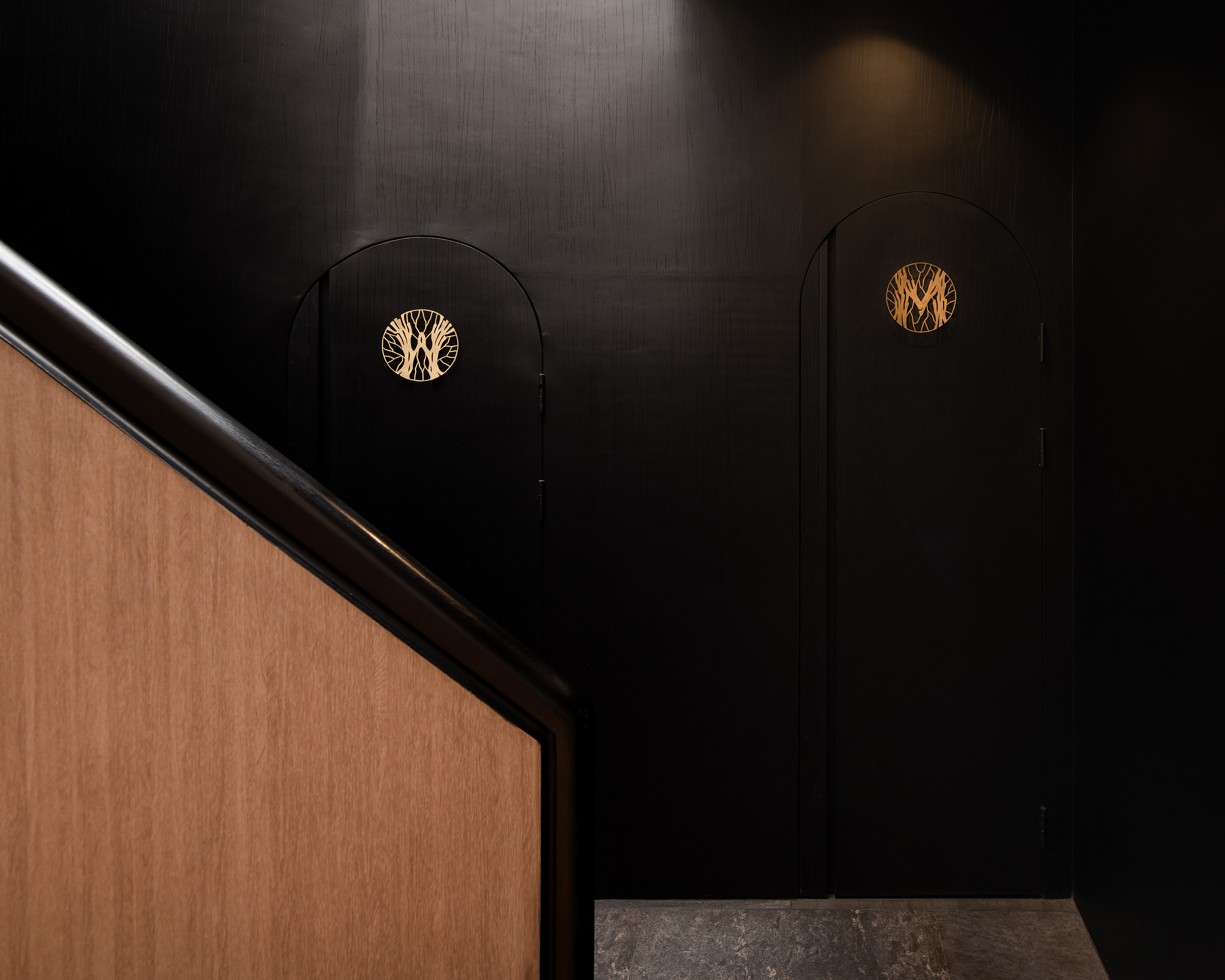 Passing through the open kitchen, black and darker lighting are used to lead our attention up the staircase to the 2nd floor. While the atmosphere between each floor connected through the airy space, the designed created a much subtle yet mystery vibe to the 2nd floor in which functioned as a bar with the darker tone furniture. Behind the counter bar, we can see the art piece of ‘Four Elements’ emphasis the origin of earth, indirectly telling the story behind ‘Mother’.