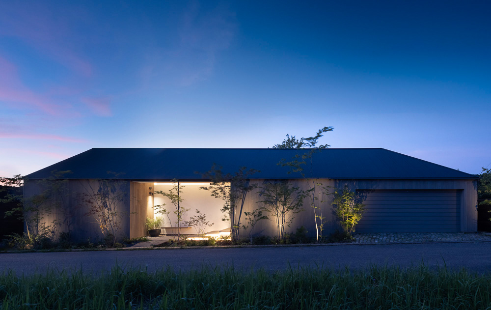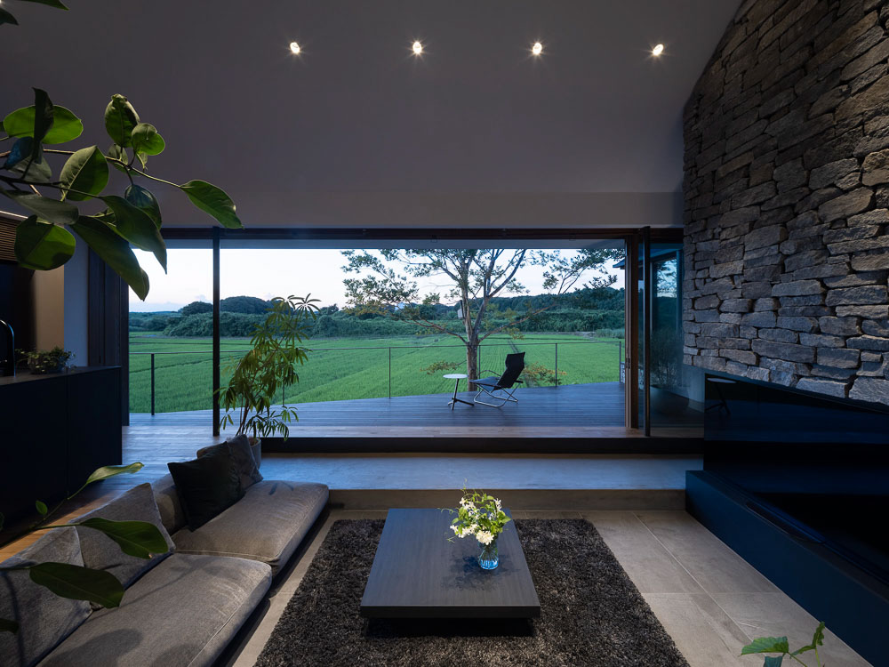 The primary goal of this design was to incorporate abundant views of nature into the living space of the residents, enriching their daily life. This residence melts into the landscape on an equal standing with natural elements, balancing relaxed comfort and stillness.
