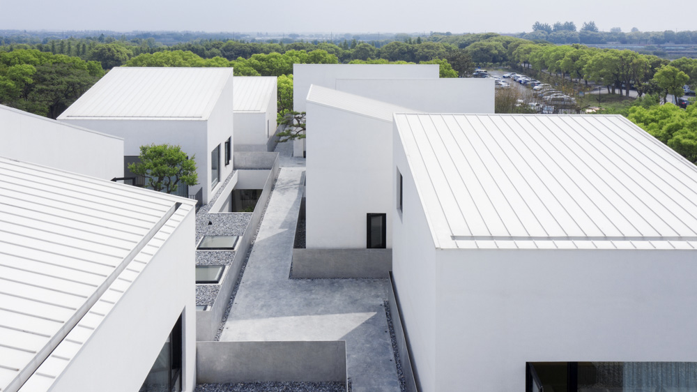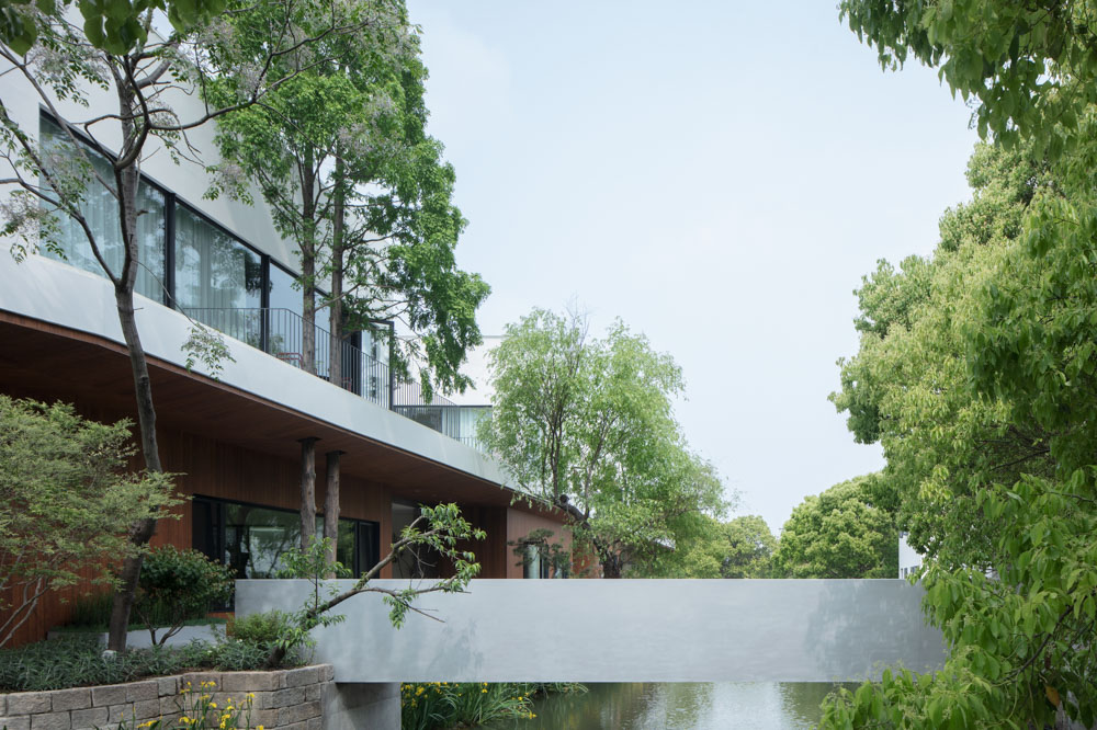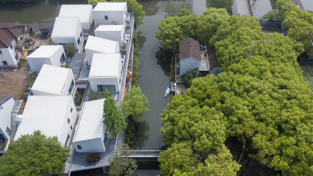 The designers imagine the architecture of the villa as a  comfortable space integrated with nature that gently grows from the texture and fabric of traditional Jiangnan watertown. The method is to break up the whole volume into several small-scale architecture and to further establish a new order by arranging and planning. The scattered volumes in an ordered way are spatially independent while interconnected in space. Due to the gaps between the architecture, nature gets the opportunity to penetrate into the interior, blurring the boundary between the inside and outside. The main concept is about forming ten independent boxes that are connected in series by a large continuous space. The