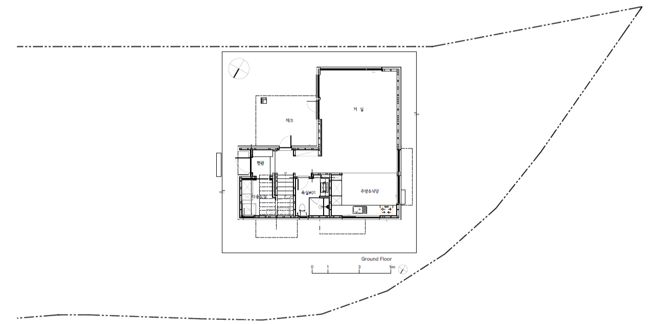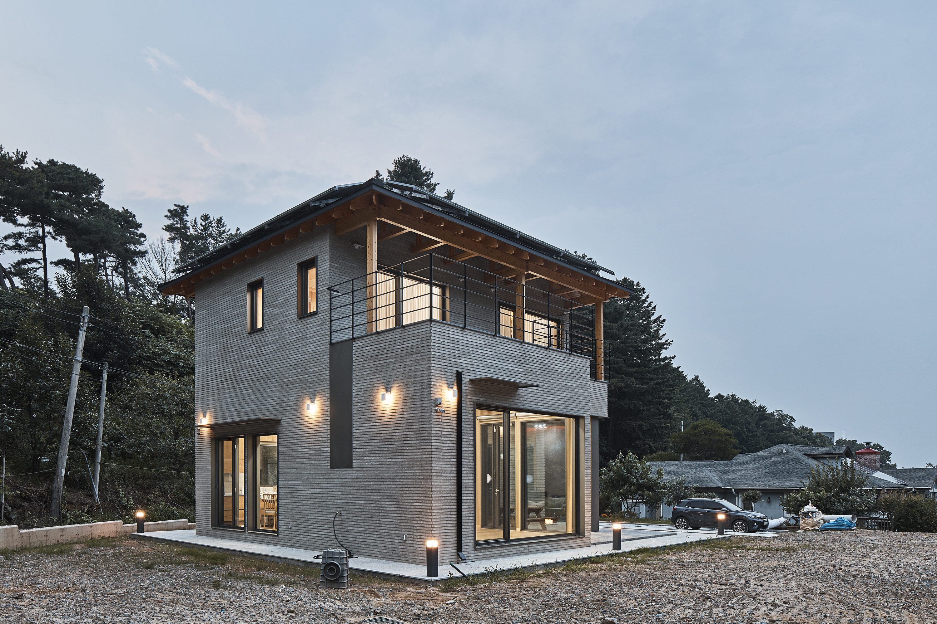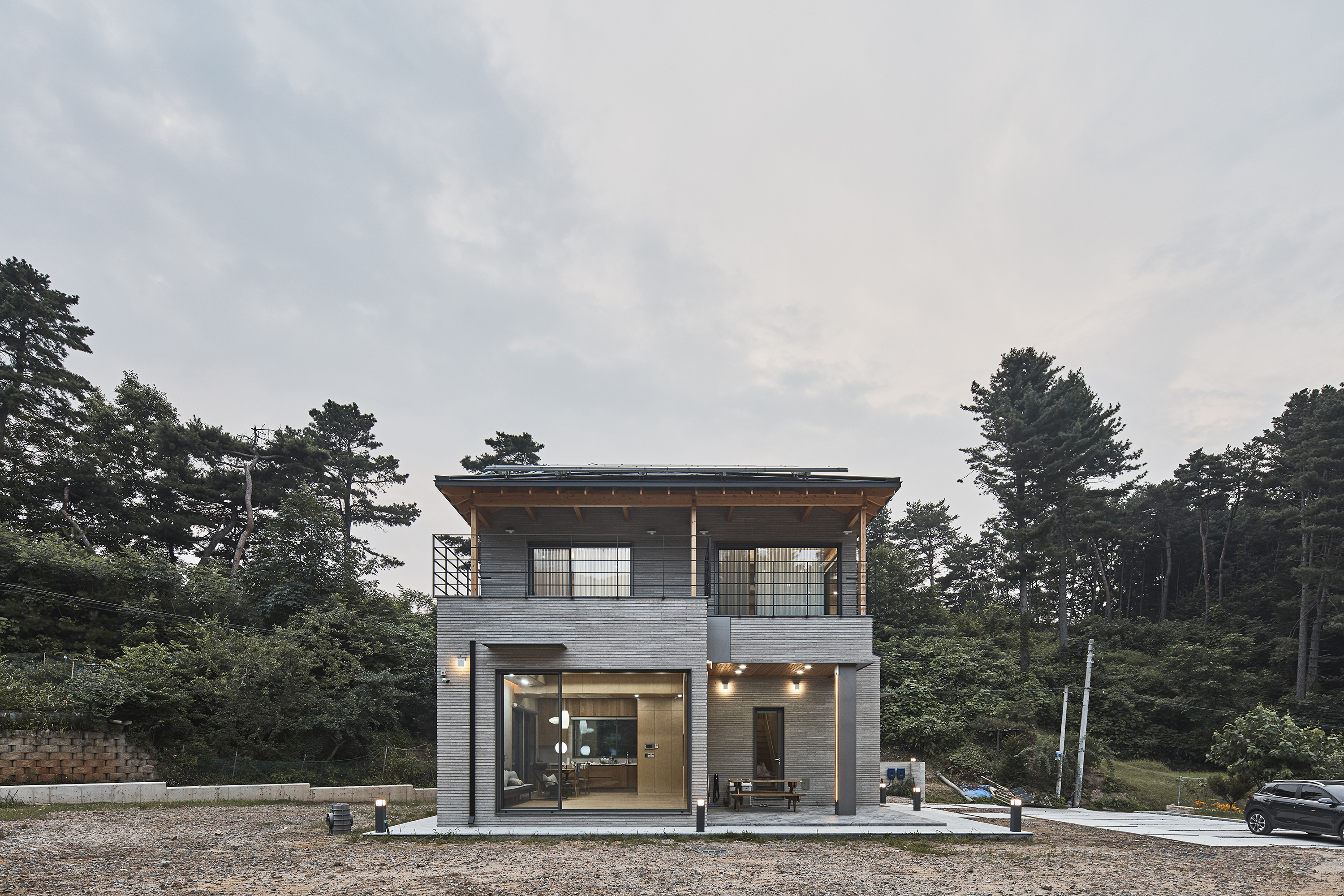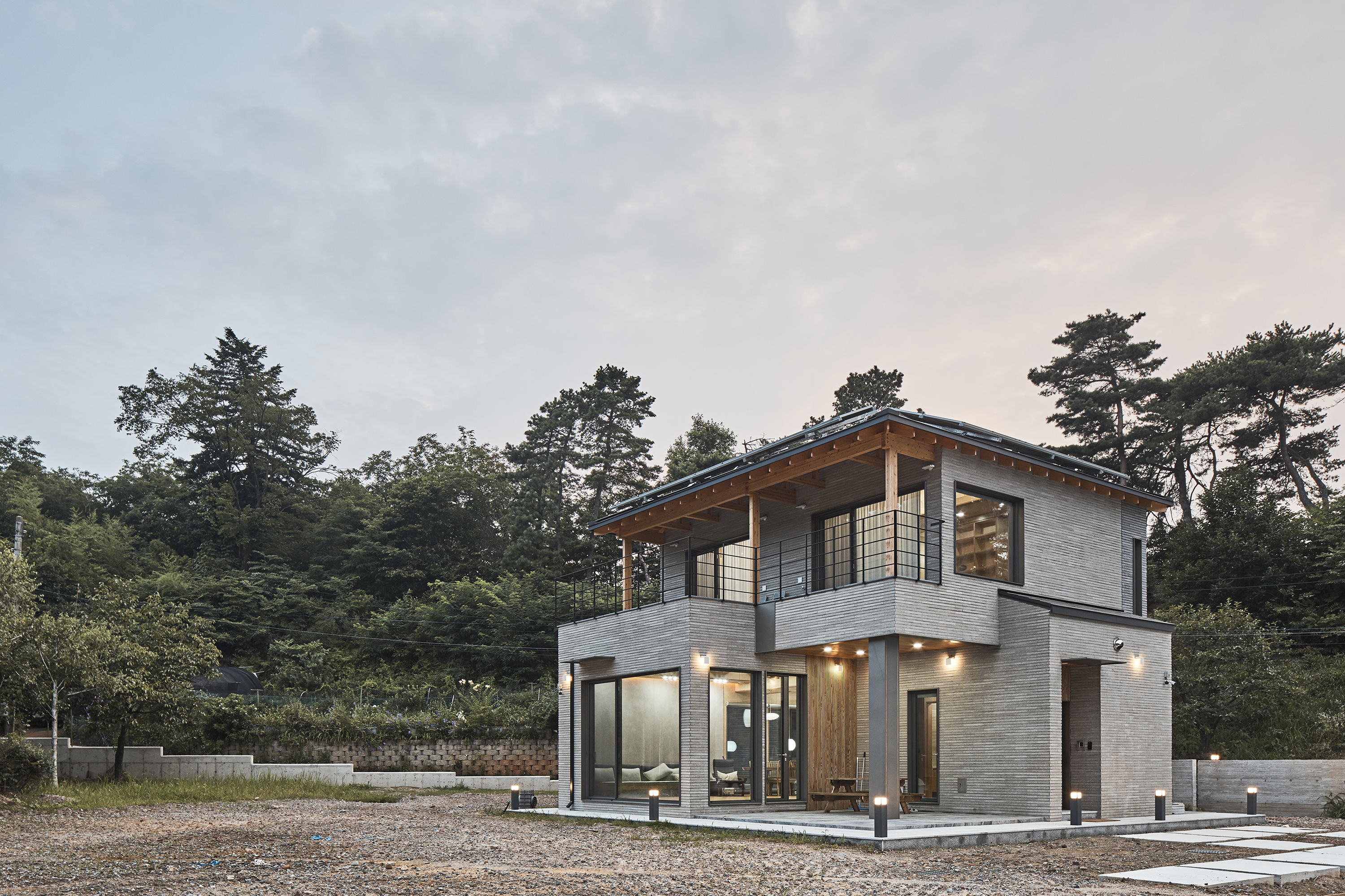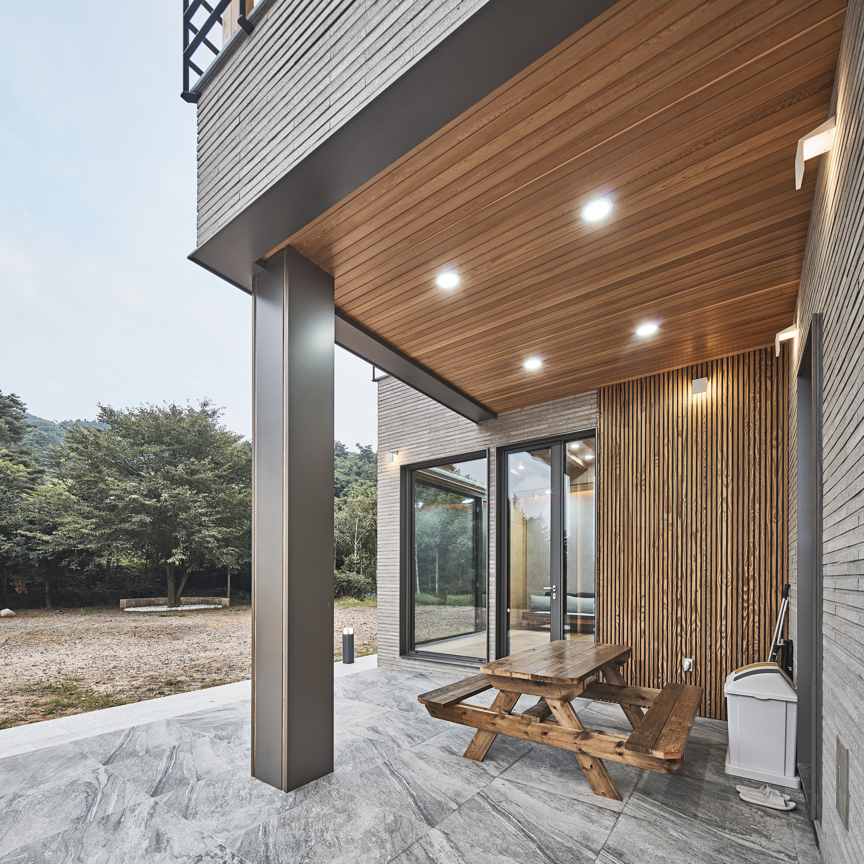 The site, which is surrounded by Chilbongsan mountain, has a natural soundproof effect with a green belt and a quiet and clean location environment. The concept of a 'breathing house' that allows the client, who wanted to get away from the stuffy city and relax in nature, to comfortably breathe was set.