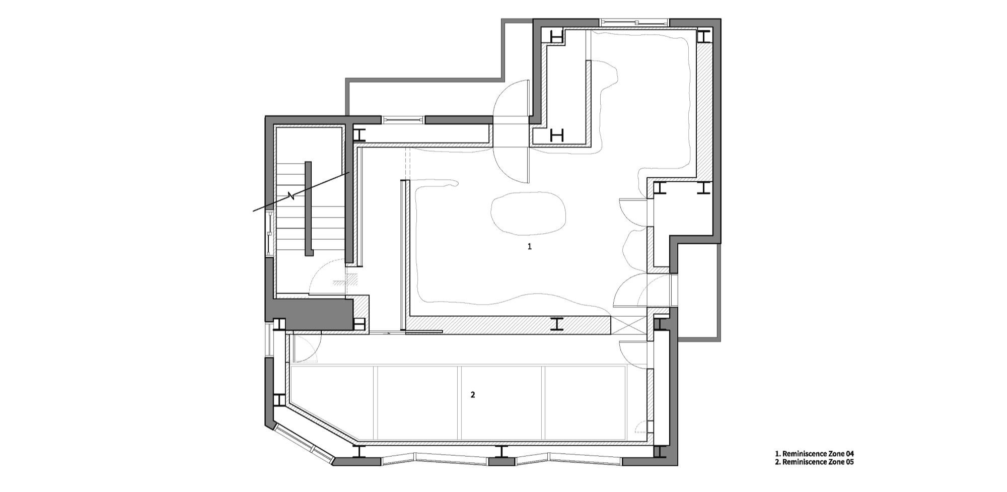 At the end of the first basement floor, you can feel the water flowing down from the first floor. When you go up to the first floor by following the stairs where the water flows, the temporal background changes from deep night to dawn, and the spatial background changes from the ground to a wetland. Dawn hides the light of the world and only reveals its black-and-white form. It was opened a little more visually than in the ground where nothing could be seen, but it is still more breath-taking. Although the front sight is still blurry, senses are gradually awakened by the sharp touch of the water. After stepping on the water path and mud that hints at the shore, you arrive at the shore where the mist rises. You gradually wake up at dawn as you realize yourself anew in a stillness that moves slowly.