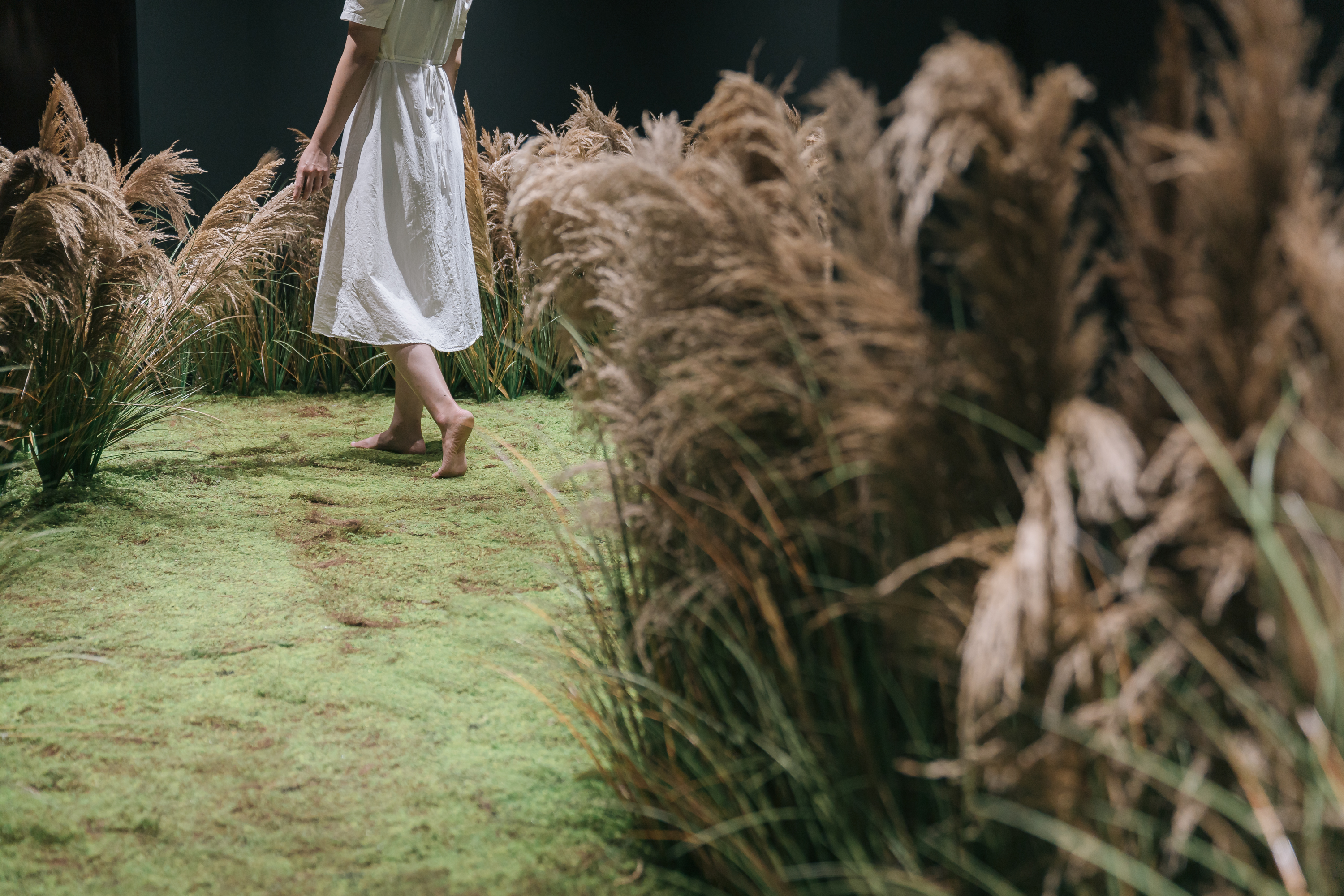 As you climb the stairs along the grass, you arrive at a field where the wind blows. The wind is not something that can be easily captured by our eyes. Therefore, we thought that it was difficult to fully understand the wind simply by looking at something swaying in the wind. In this field, a landscape of wind that cannot be experienced in daily life was created to evoke the existence of the wind and to allow spectators to feel the various expressions of the wind with their whole body. The first room has a field of reeds swaying in the wind below, and waves swaying in the wind above it. You can lie freely on the reed field and feel the traces of the wind with your whole body. The second room has water below and a field of time above. This time, you can lie on the water and admire the fields swaying in the wind. While coming this far, spectators can feel a new sensation with every step, and feel that their whole body is gradually filled with clearer sensations through unfamiliar experiences. The clearer the body, the more vaguely scattered thoughts and emotions are organized.