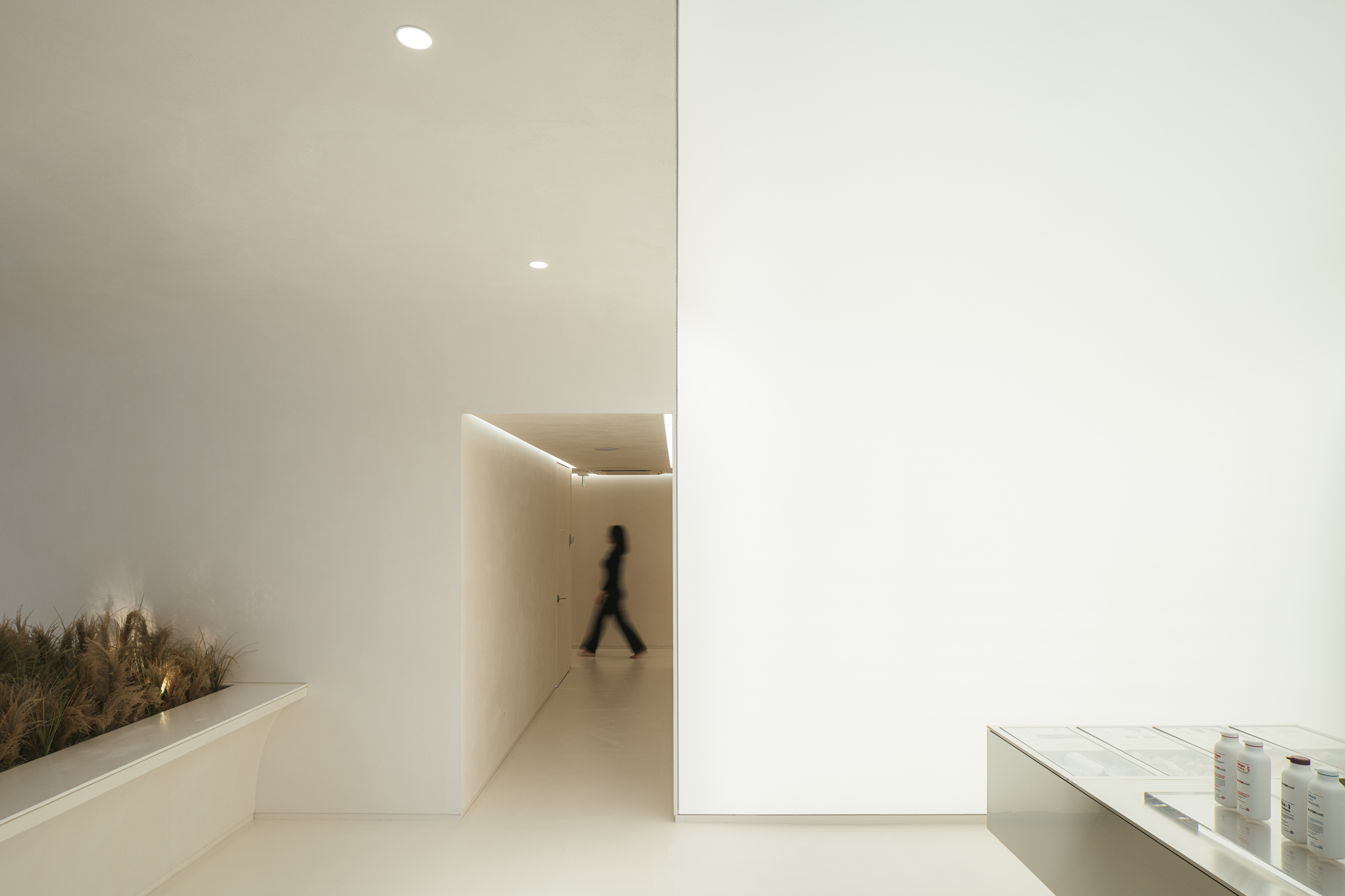 리셉션은 사용자의 흐름에 맞추어 이성과 감성의 공간으로 구분하여 그에 맞는 역할을 부여했다. 고객을 맞이하는 테라피 바는 사용자의 컨디션에 맞는 차를 내어주어 차의 색을 보고, 향을 맡고, 맛을 느끼며 클리닉 전에 오감을 자극하며 몸과 마음을 회복할 수 있도록 하였다. 이는 단순히 치료의 목적을 넘어 심상의 안정을 꾀하기 위한 환대의 제스처이다.