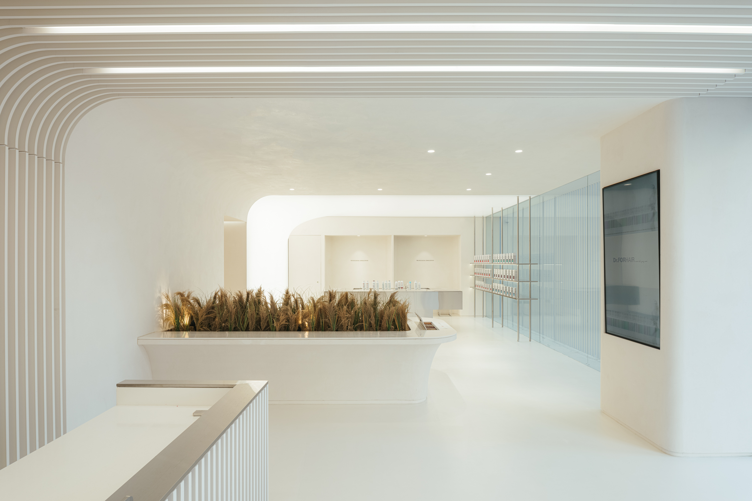 DR. FOR HAIR, a hair care brand, has functional shampoo and customized care content (head spa) that directly manages consumers' scalp. The existing head spa store of Doctor For Hair was a space reminiscent of the hospital's image, focusing on the keyword of Doctor and limited to the medical appearance of treating the scalp with cold machines in a white space full of cleansing scent. We concepted the professional and medical appearance of "Doctor" as reason, and set "Sense and Sensibility" as a space concept that can maximize head spas and content using various senses.