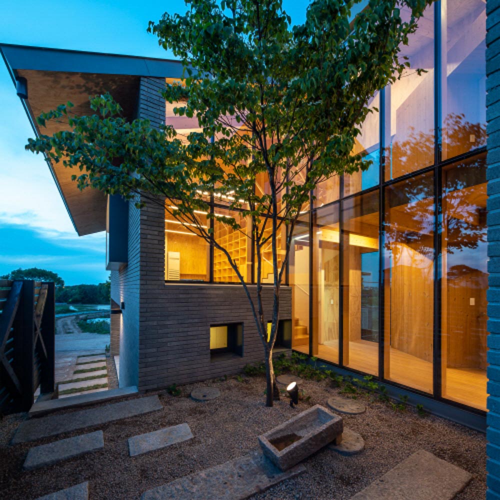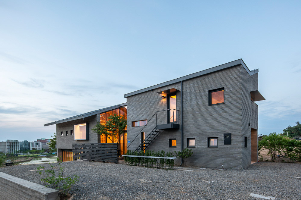 When viewed from the road, there is a small fence with a layer that allows entry and exit through the concave interspace, and internal movement is always made to circulate around the intervening space. The deep eaves with simple mass and function were unified with the gray of cement bricks, and the interior was brought together with the scent and color of wood.