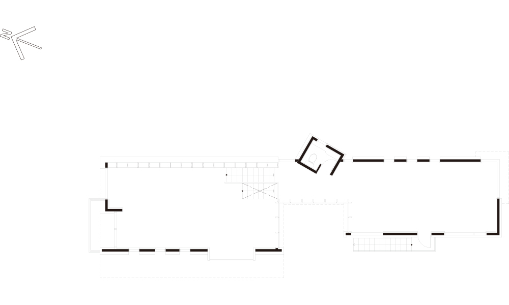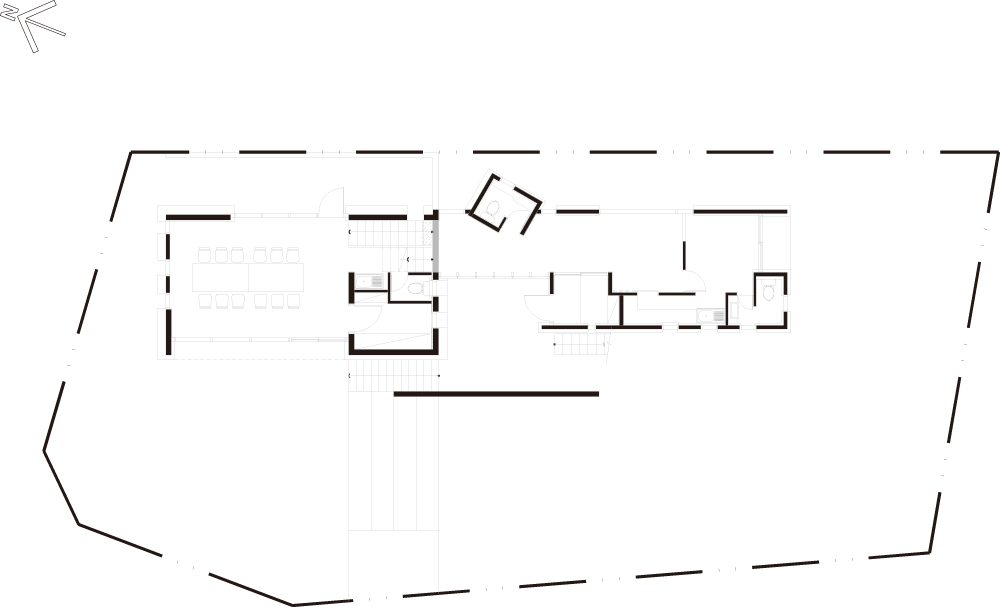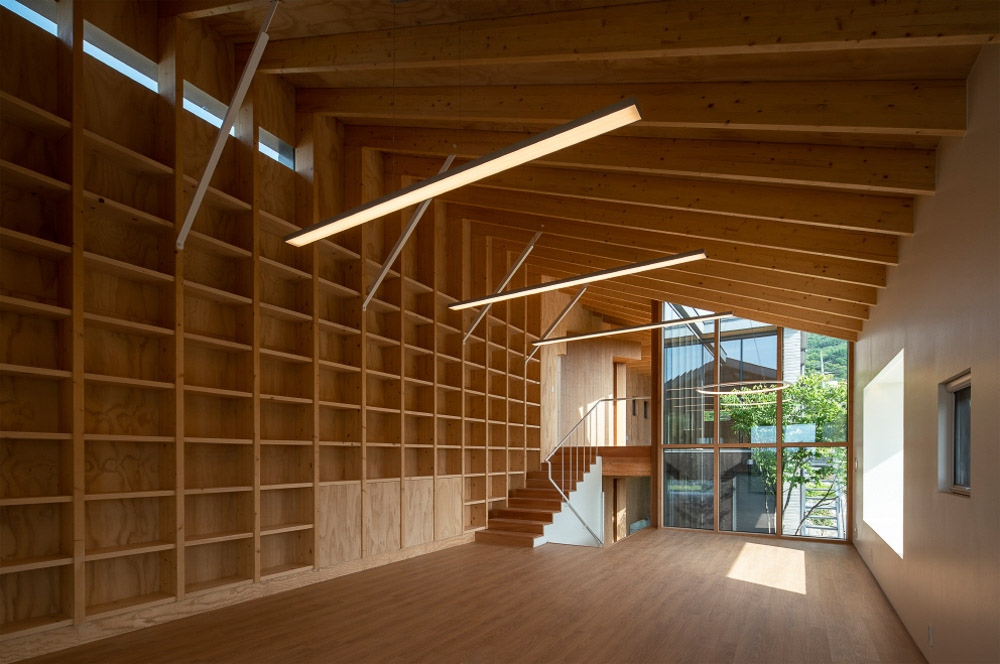 The building, built on a 1.8 meter long and inclined site, has a skip-type cross-section that adapts to the shape of the site and is cut in half, and is suitable for the use of each room. The building has a variety of floor heights. In particular, the main editing room is an area with a bookcase used as an architectural structure and a space that focuses on a sense of openness with a floor height of over 3.6 meters.